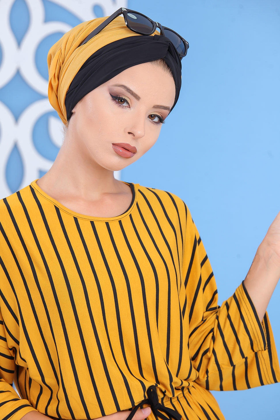 Robe longue à rayures style décontracté pour femme - Couleur jaune moutarde Vetement & Accessoire
