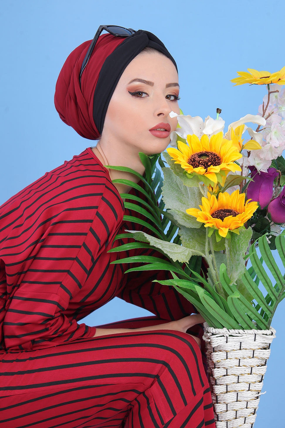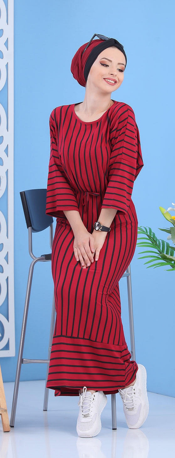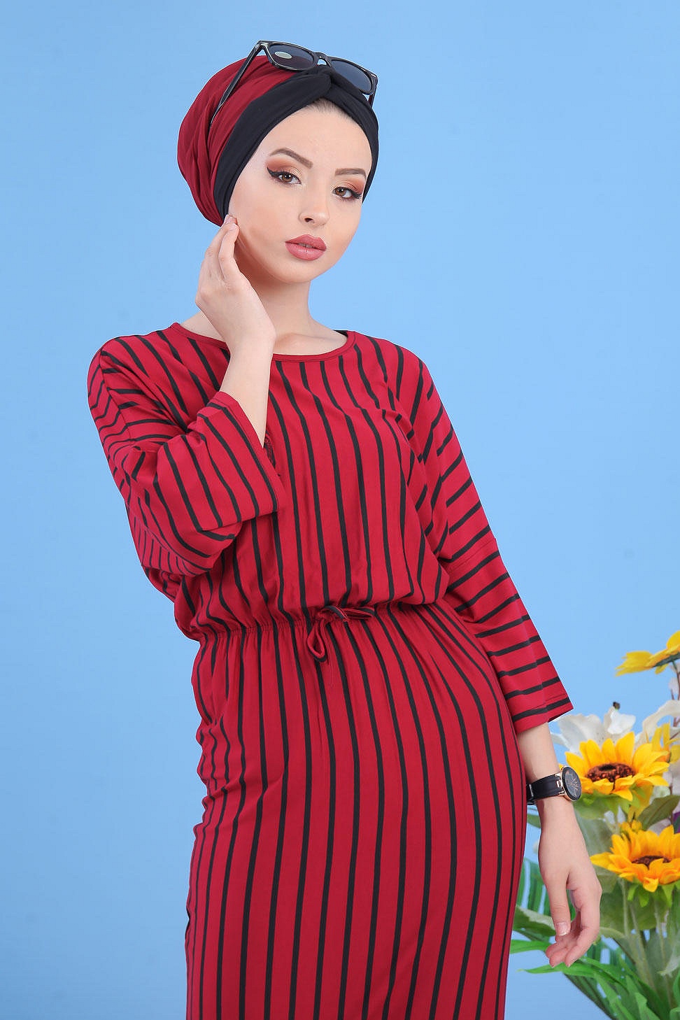 Robe longue à rayures style décontracté pour femme - Couleur framboise Vetement & Accessoire