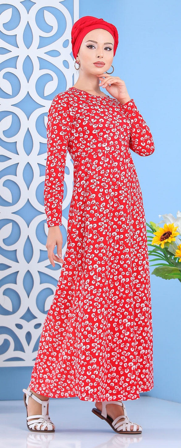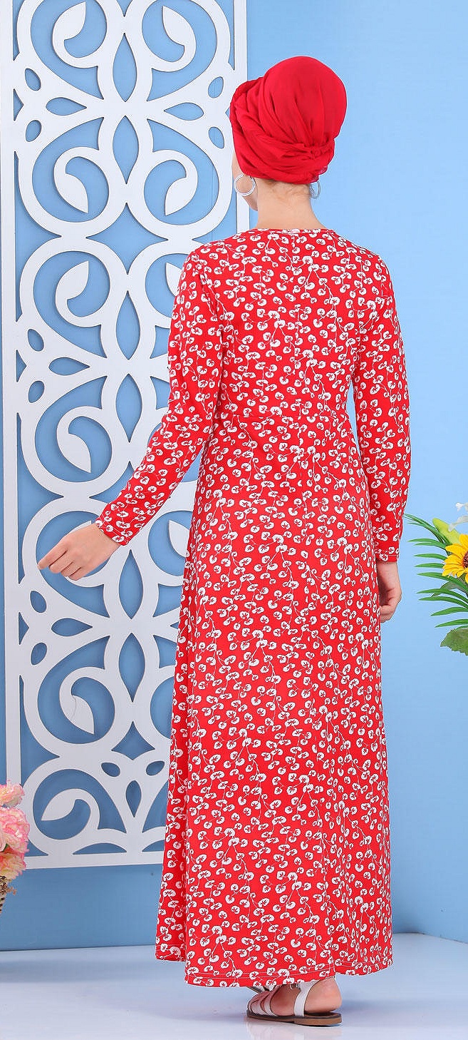 Robe longue à imprimés nénuphar pour femme - Couleur rouge Vetement & Accessoire