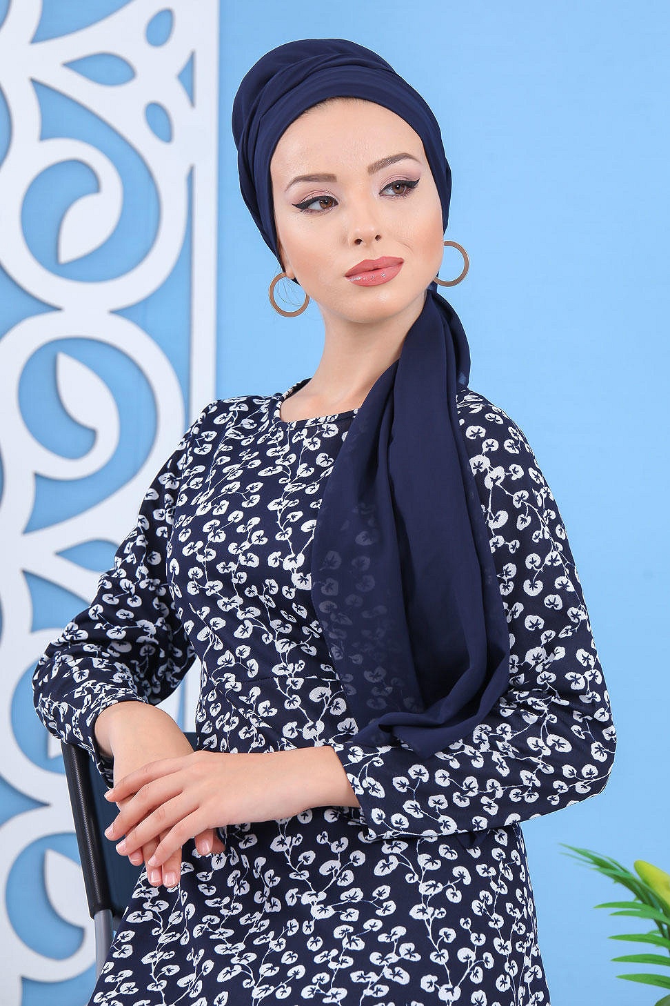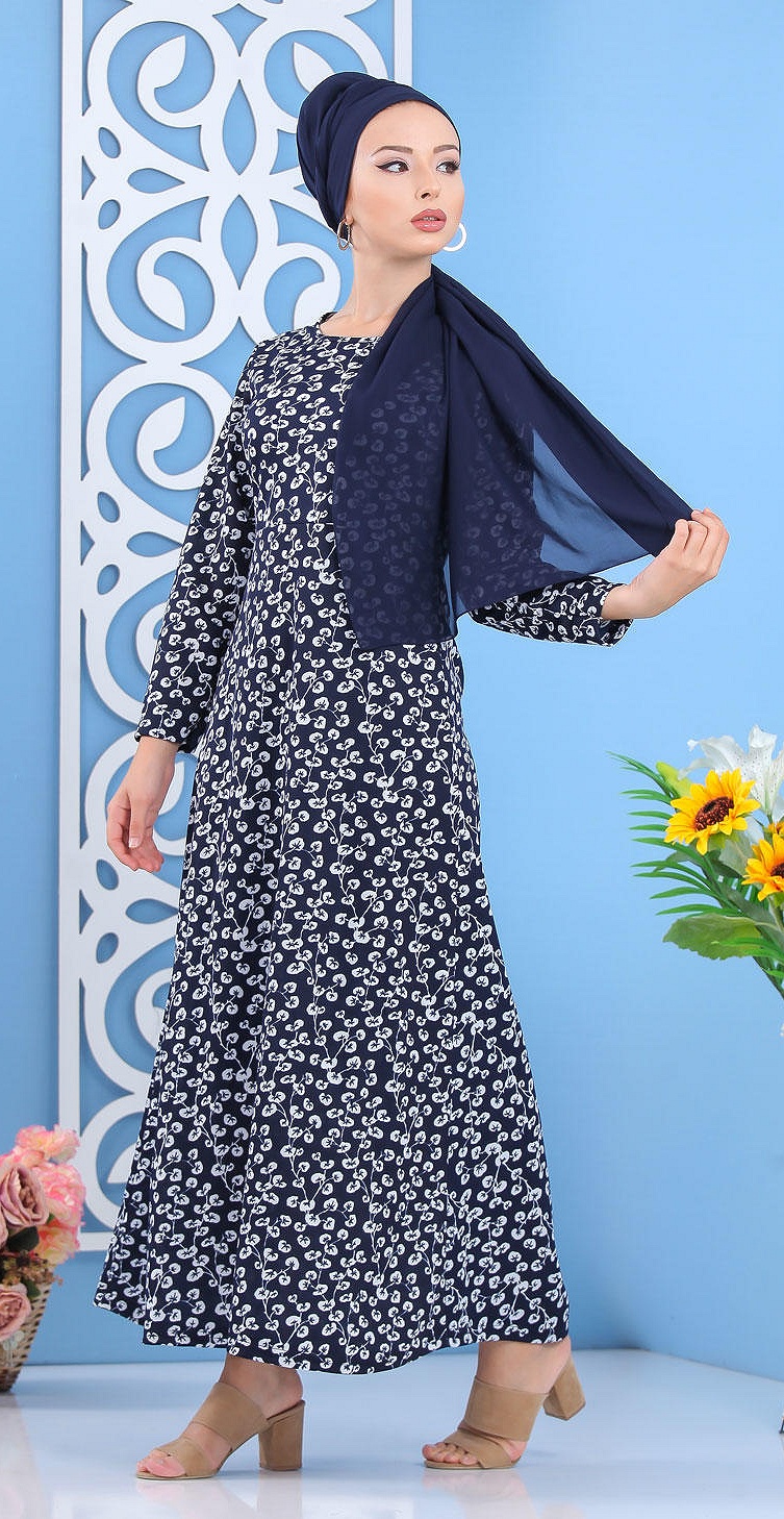 Robe longue à imprimés nénuphar pour femme - Couleur bleu marine Vetement & Accessoire