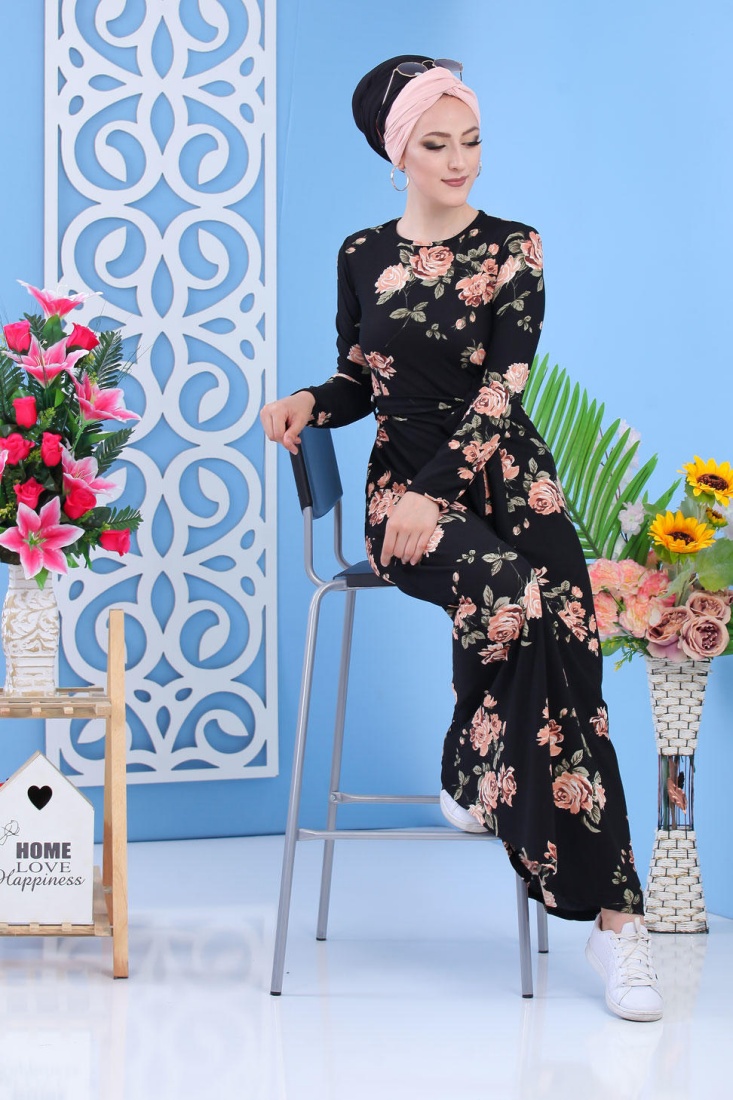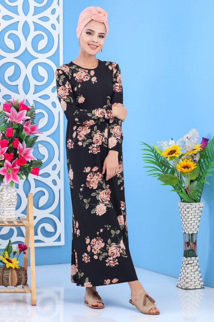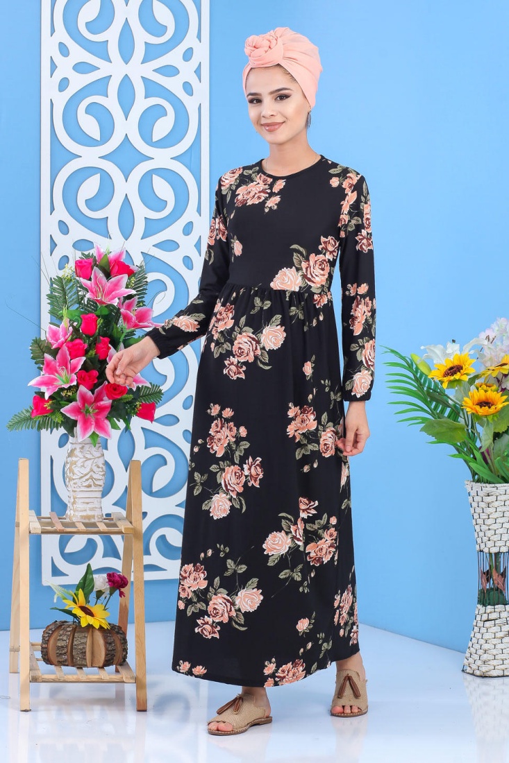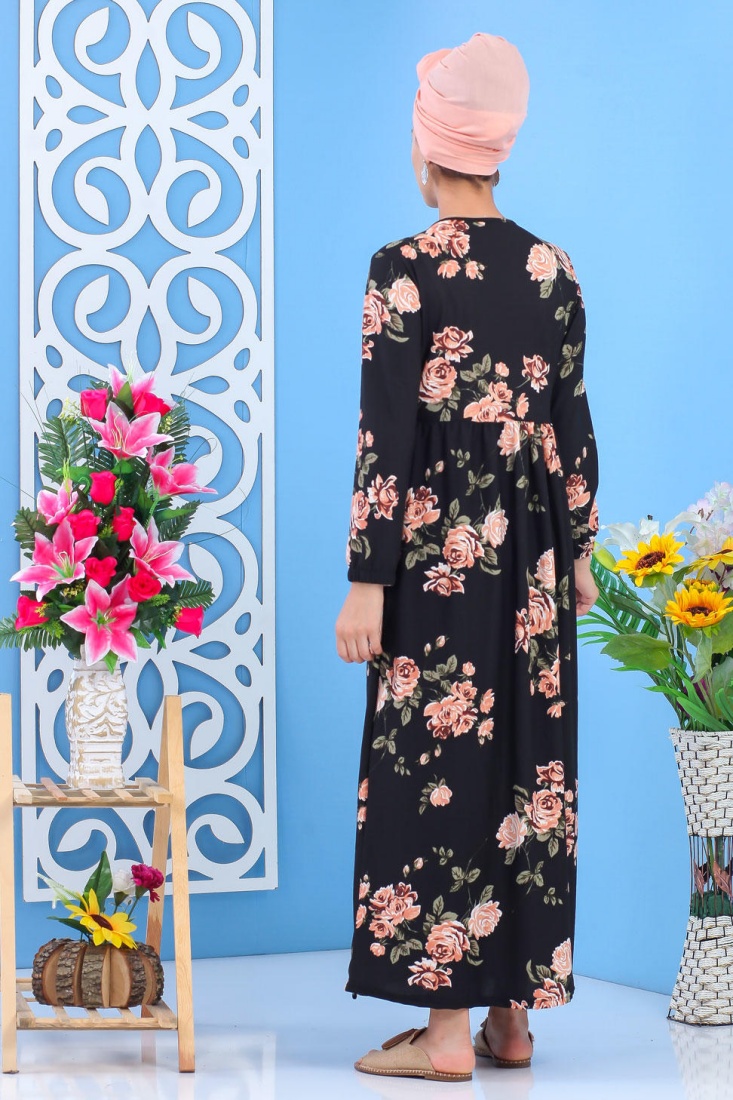 Robe longue, col rond, manches finition élastiques aux poignets, taille froncée élastique, tissu fluide. Ce modèle avec imprimés fleurs reste un valeur sure pour avoir une tenue chic et élégante aussi bien au quotidien que pour des occasions.