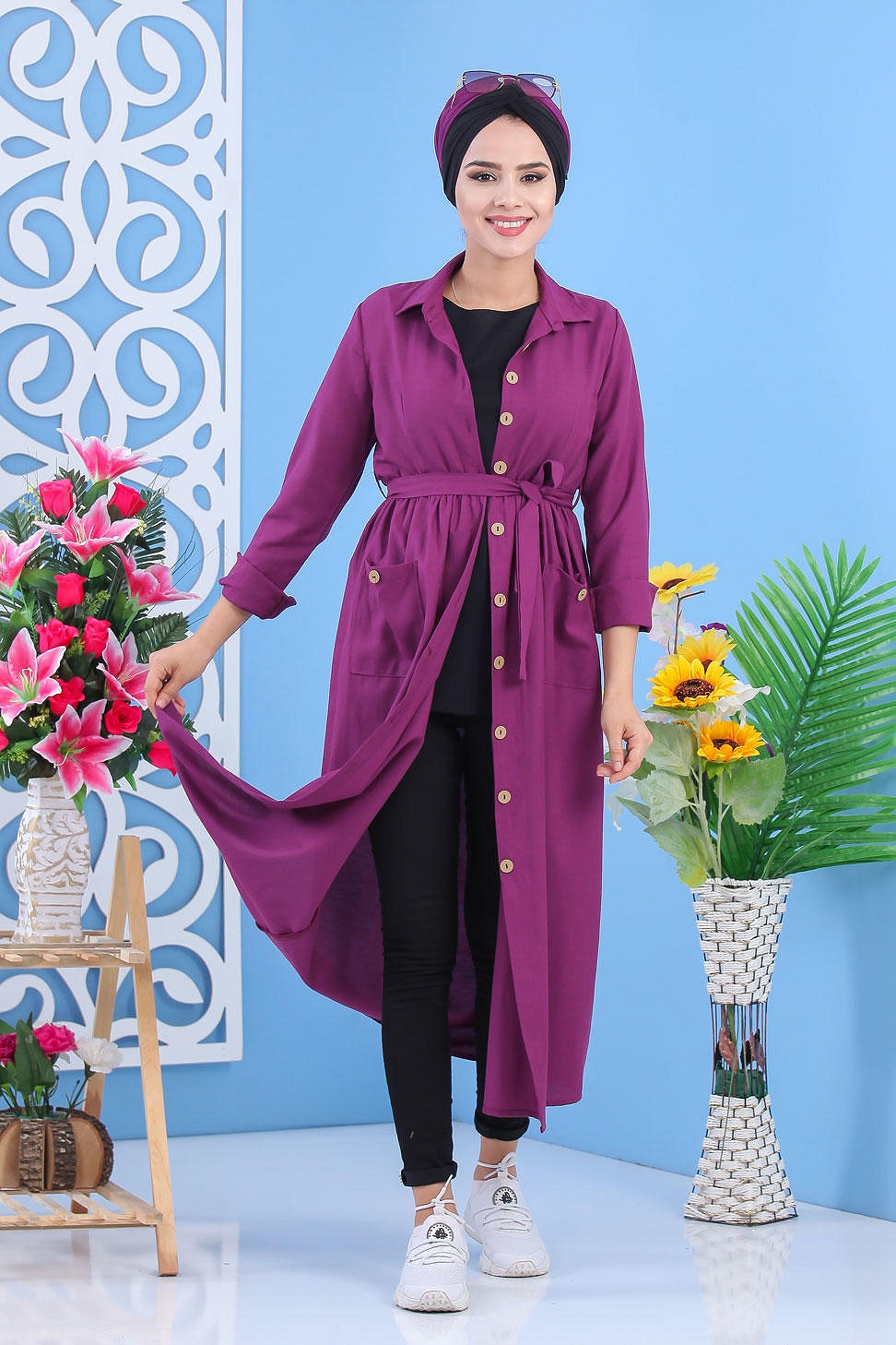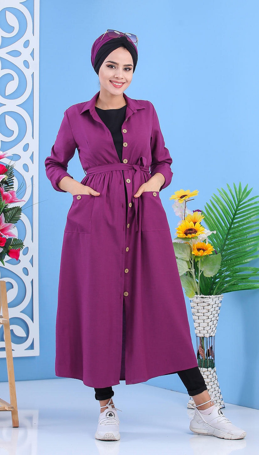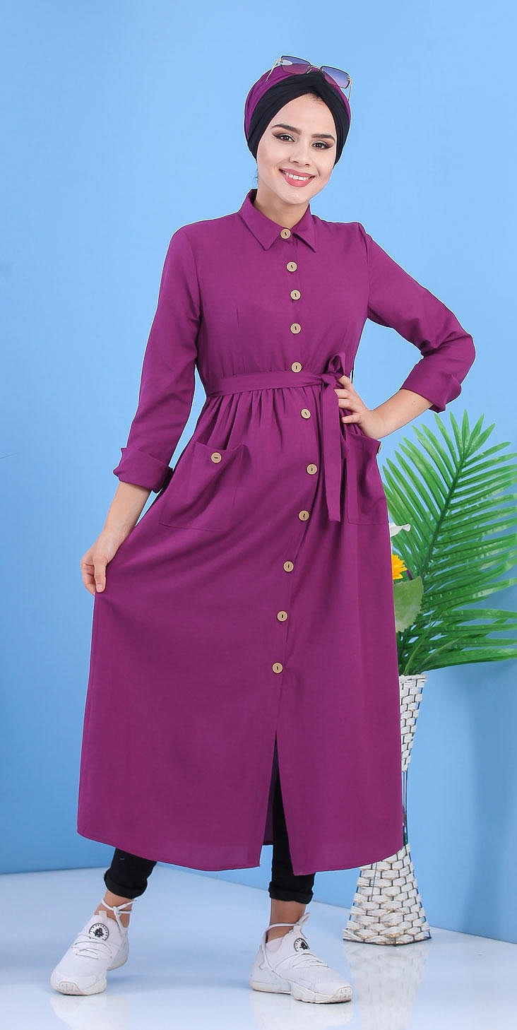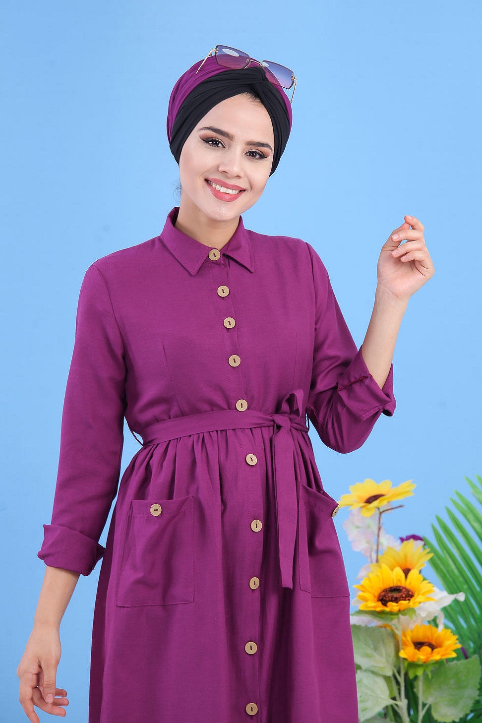 Robe de ville boutonnée pour femme style casual - Couleur violette (Grandes Tailles disponibles) Vetement & Accessoire
