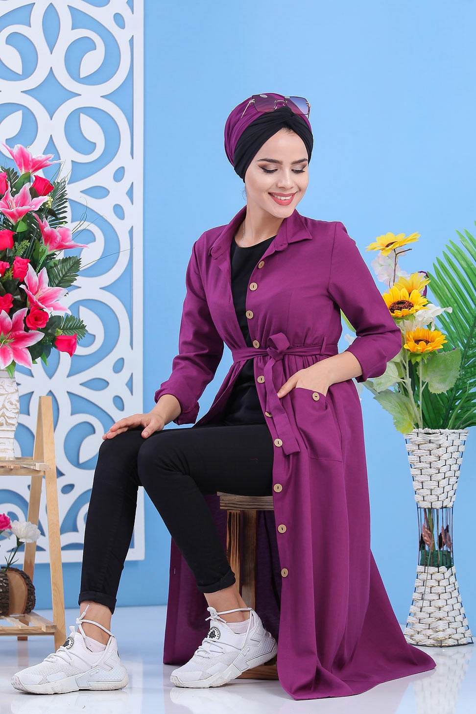 Robe Abaya brodée pour femme - Couleur Violet - REF. 29914 (28.00 €)