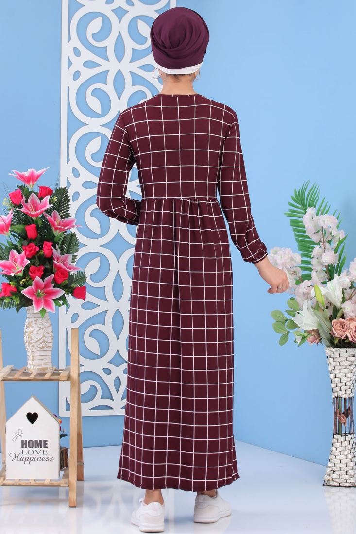 Robe avec imprimés à carreaux de couleur aubergine (grandes tailles) - Vetement femme voilée moderne Vetement & Accessoire