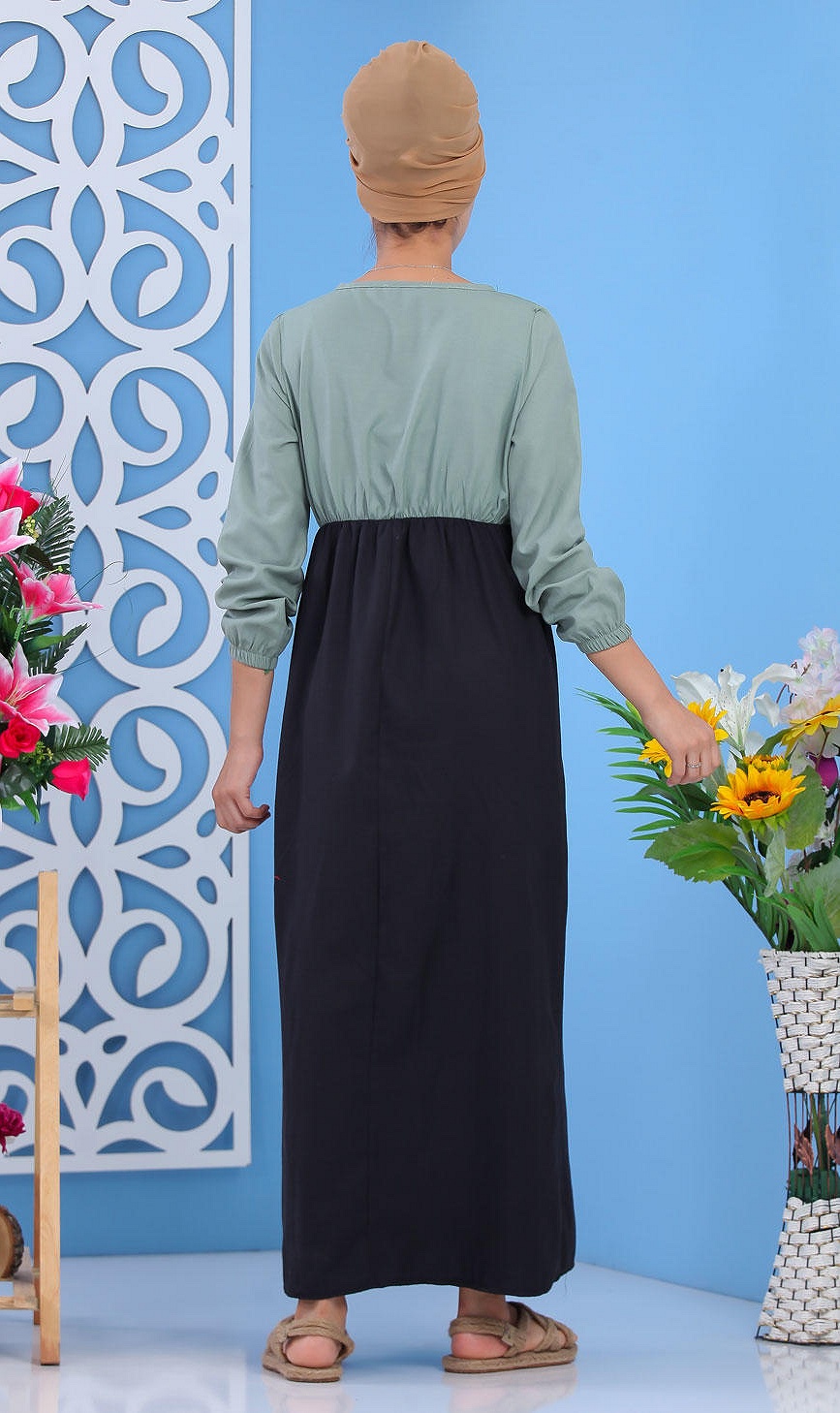 Robe longue bi-couleur a boutons pour femme - Couleur vert amande