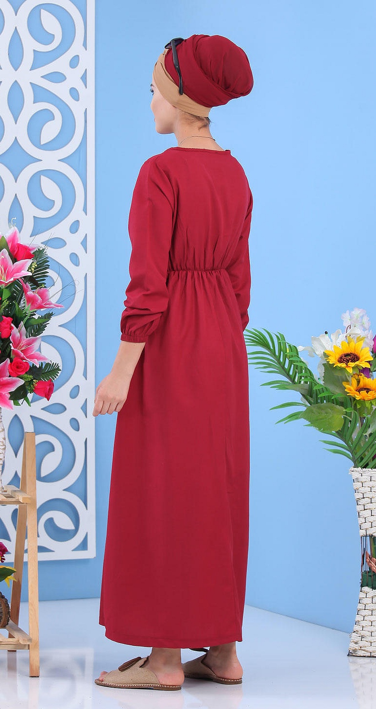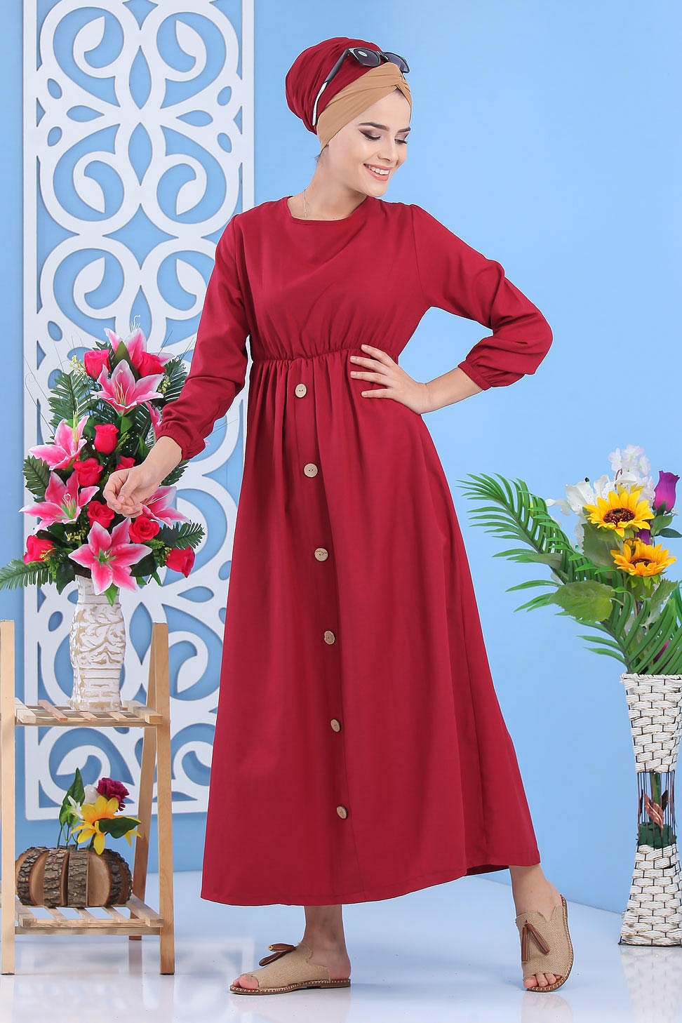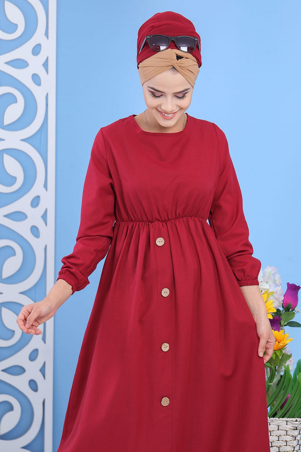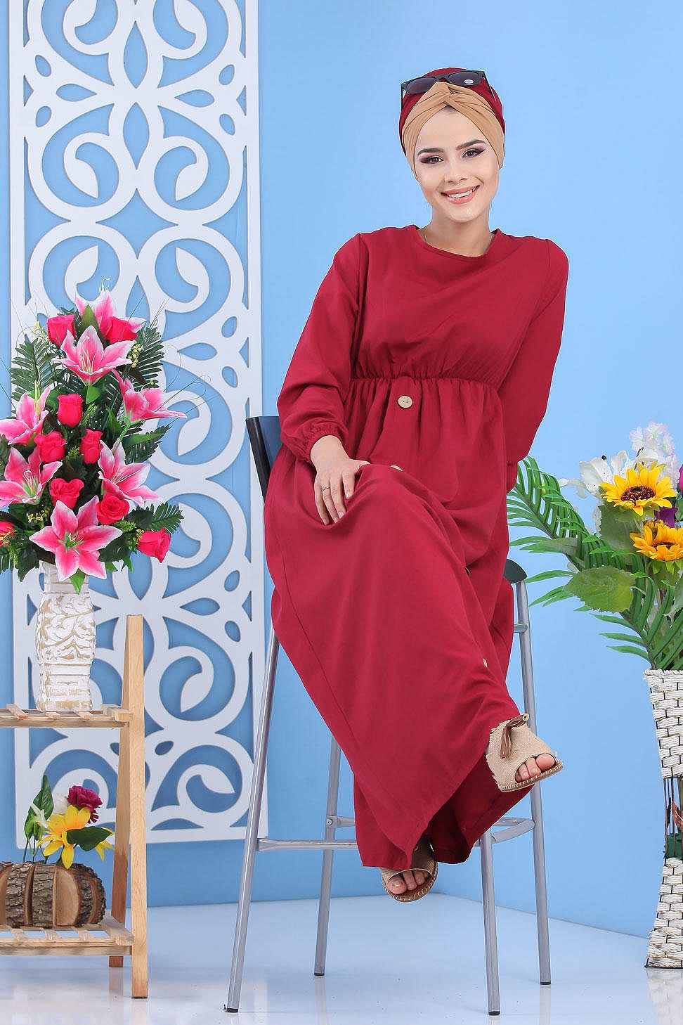 Robe longue cintrée décoration boutons - Couleur grenat (Mode chic et moderne grande taille pour femme) Vetement & Accessoire