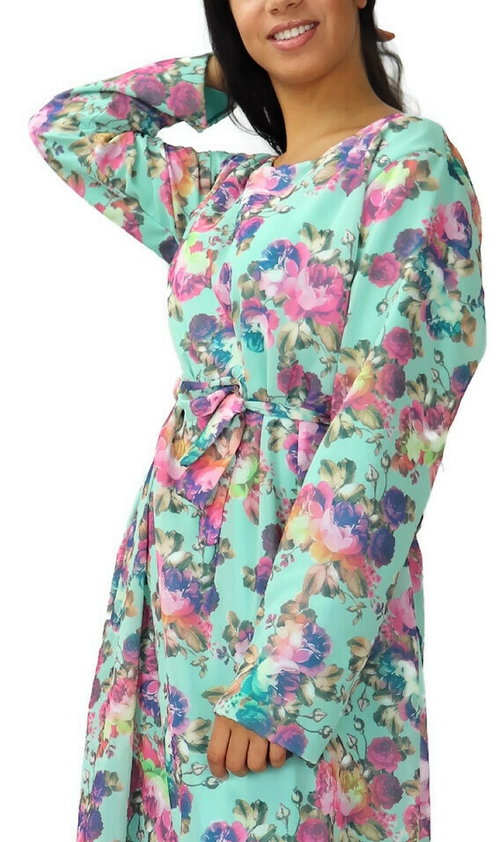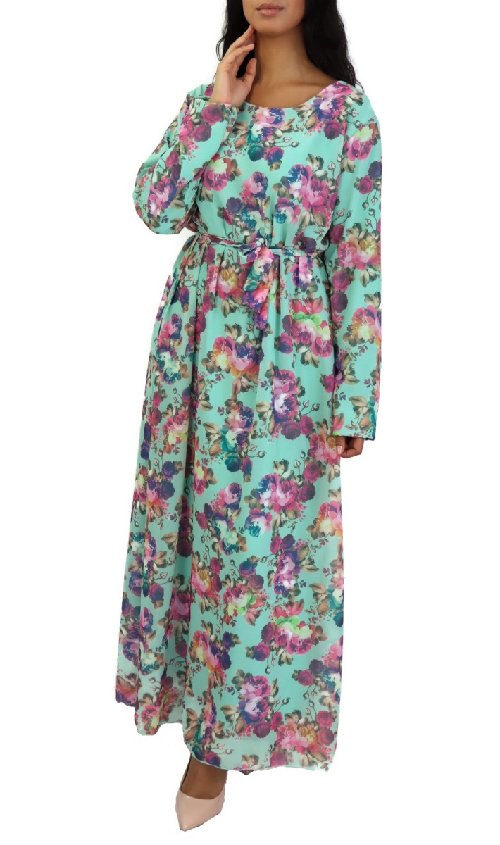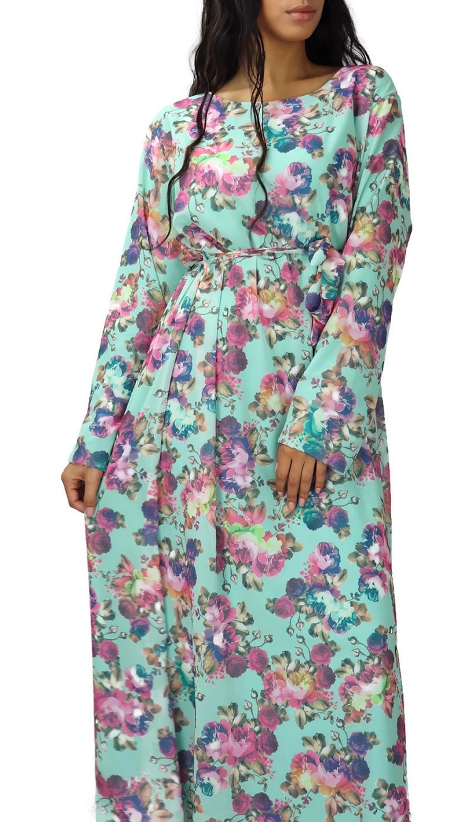 Robe longue, entièrement doublée, encolure ronde, manches longues, accompagnée d'une ceinture à nouer sous passants à la taille. Elégante et féminine, cette robe se porte en toutes occasions.
