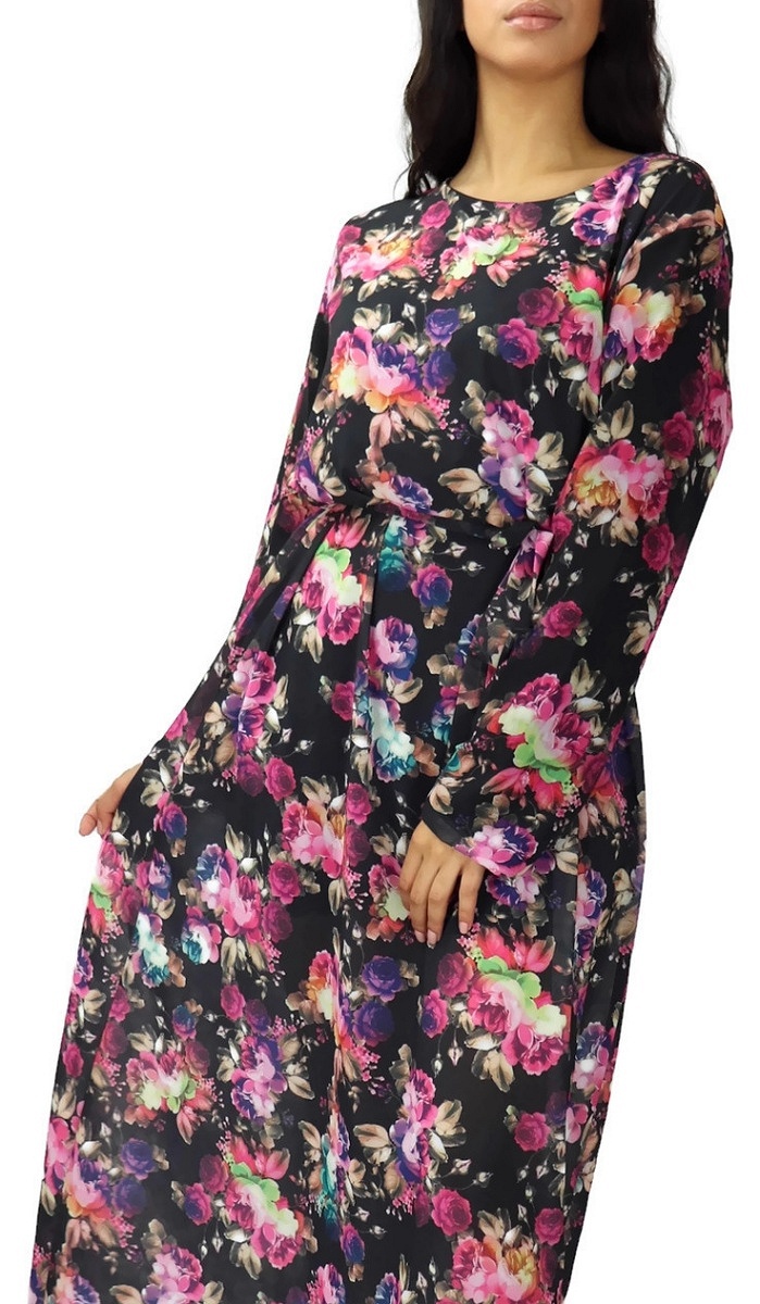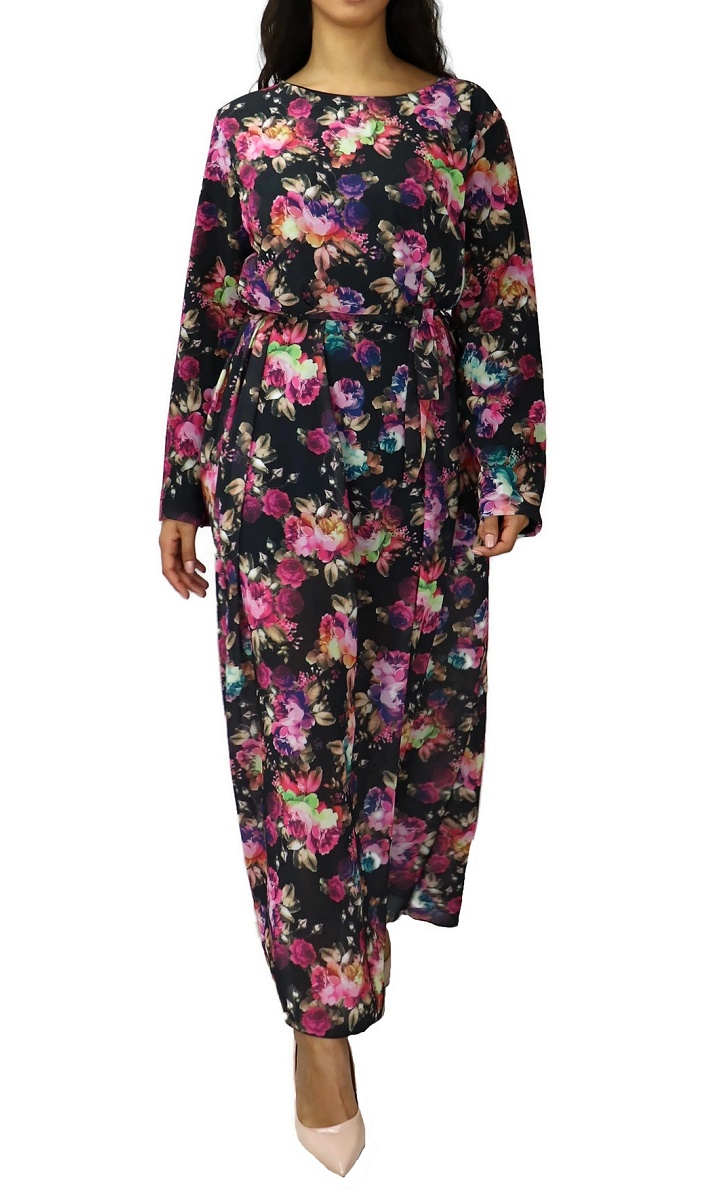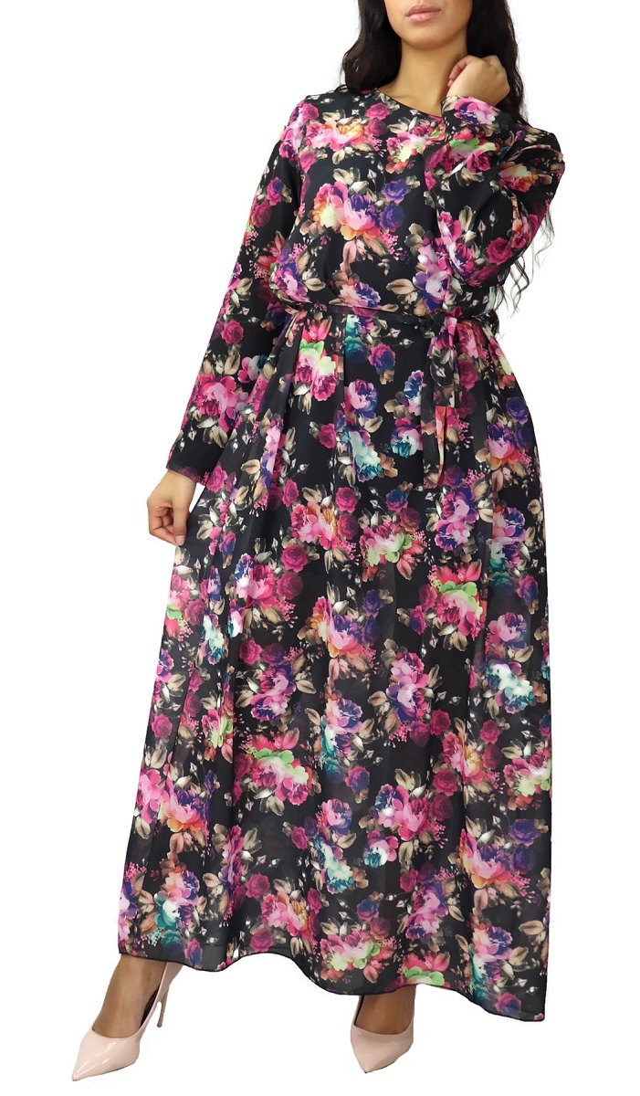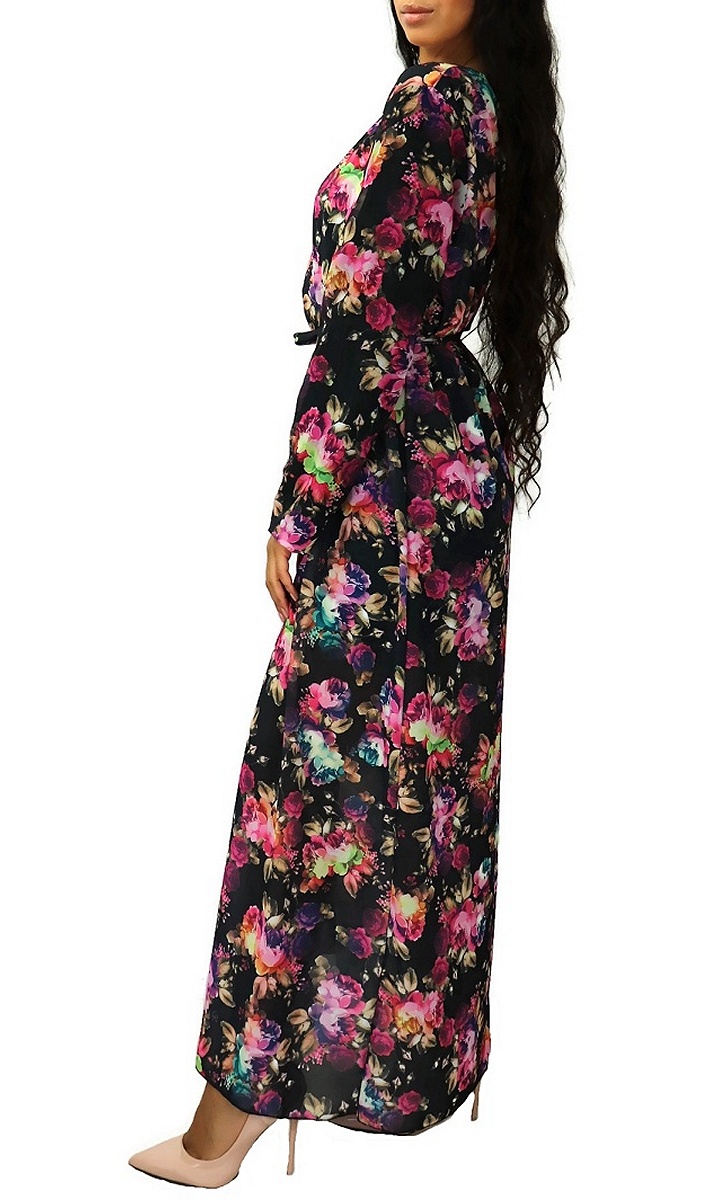 Robe longue fleurie fluide pour femme - Couleur Noir Vetement & Accessoire