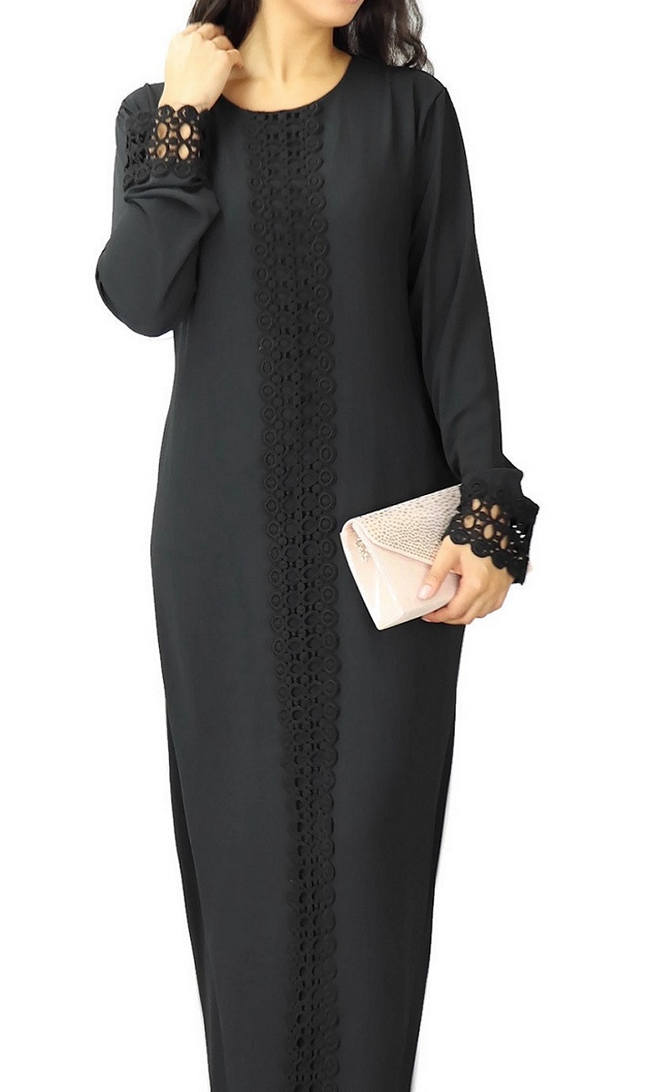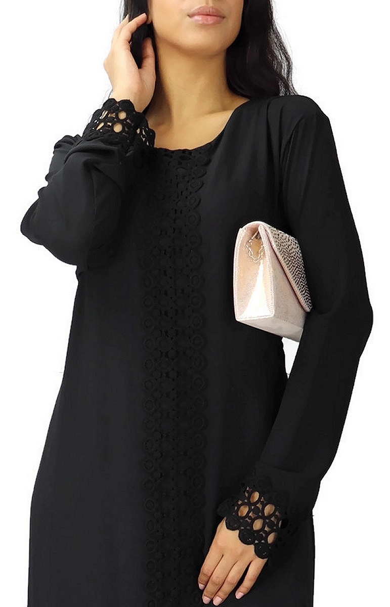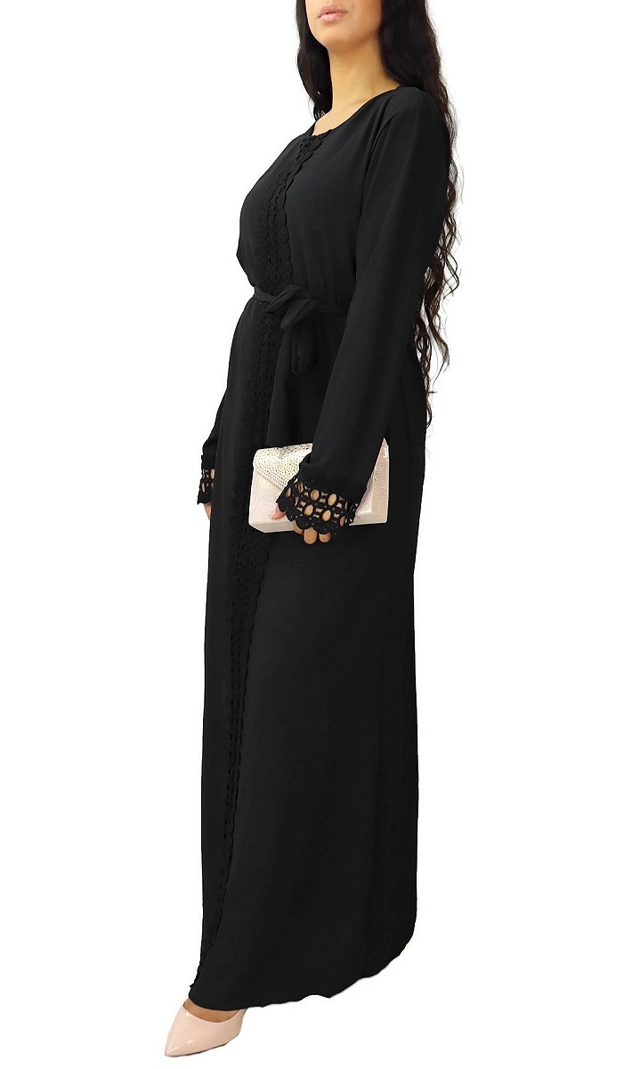 Optez pour cette robe longue, légère et fluide, effet crêpe, col rond, entièrement doublée, manches longues, le tout accompagné d'une ceinture à nouer sous passants à la taille. Dentelles sur toute la longueur et en bas des manches. Cette version unie s'adapte à tous les looks, au quotidien ou en vacances. N'hésitez pas à lui associer des accessoires imprimés ou colorés.