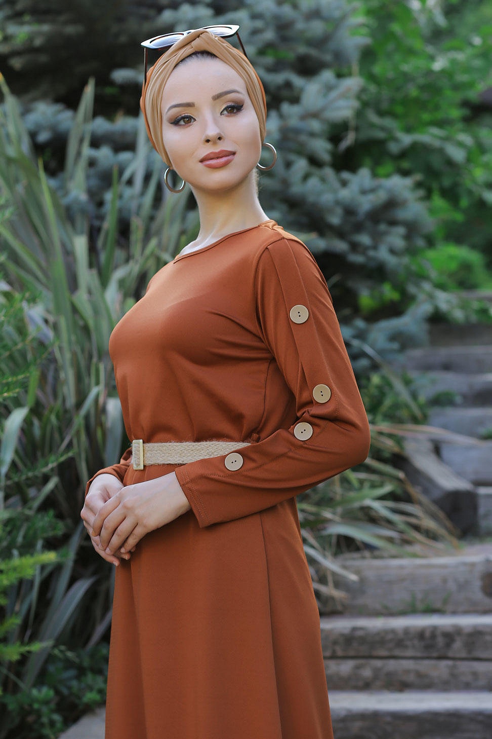 Robe de ville longue décoration boutons pour femme - Couleur rouille Vetement & Accessoire