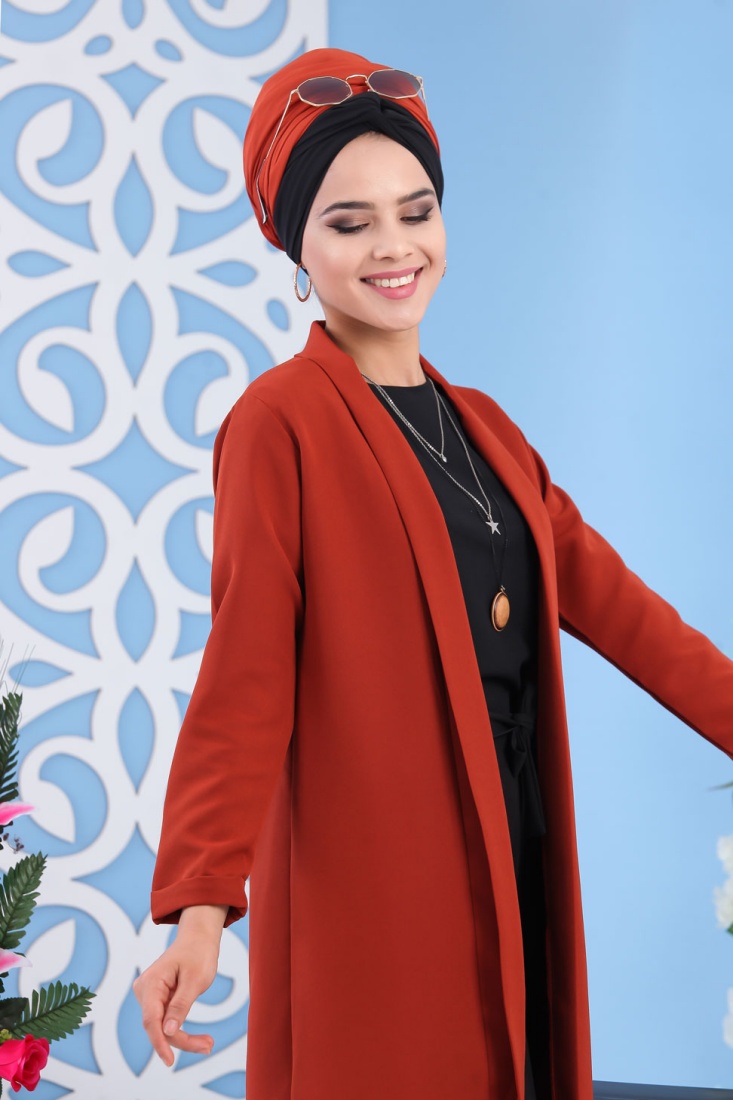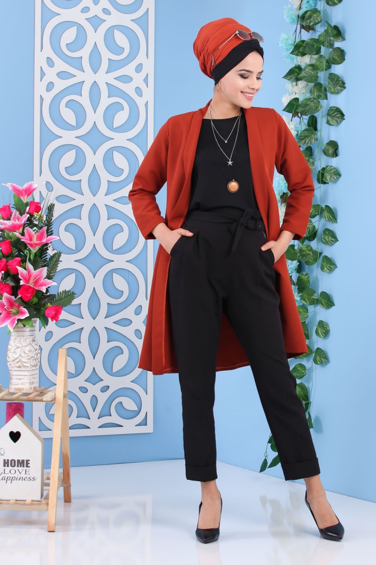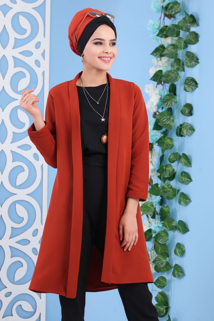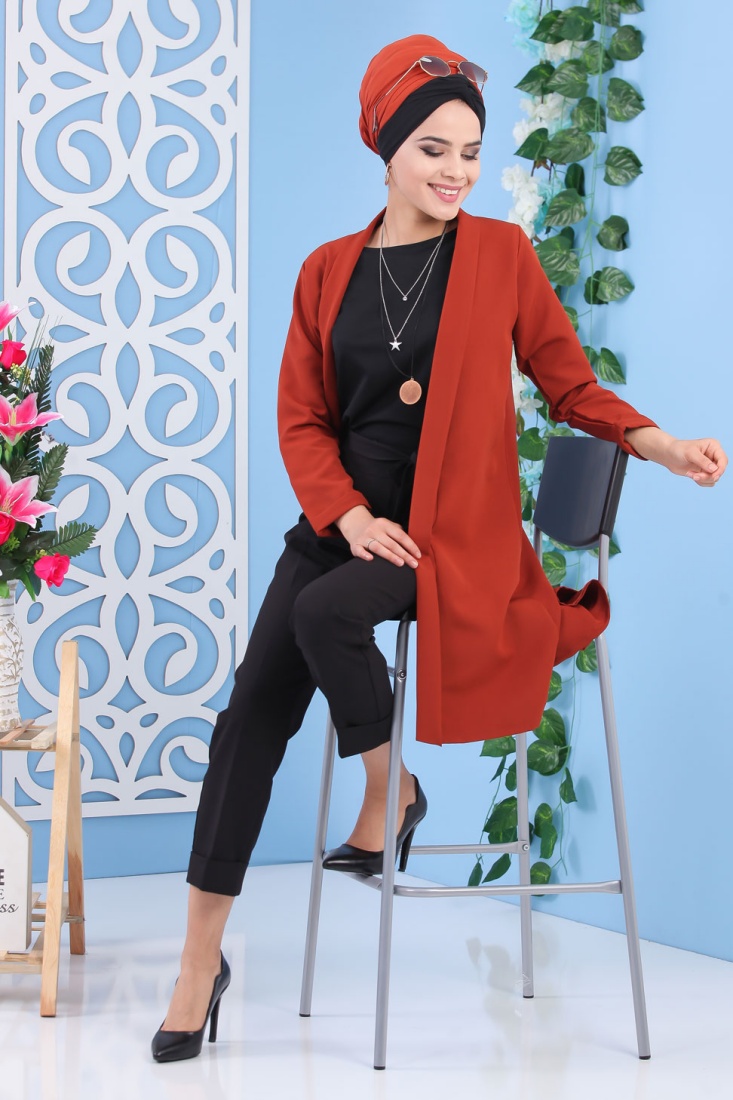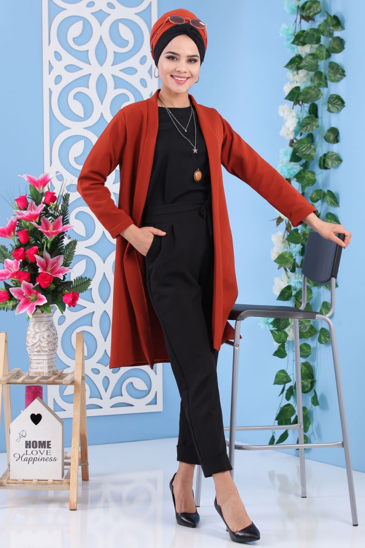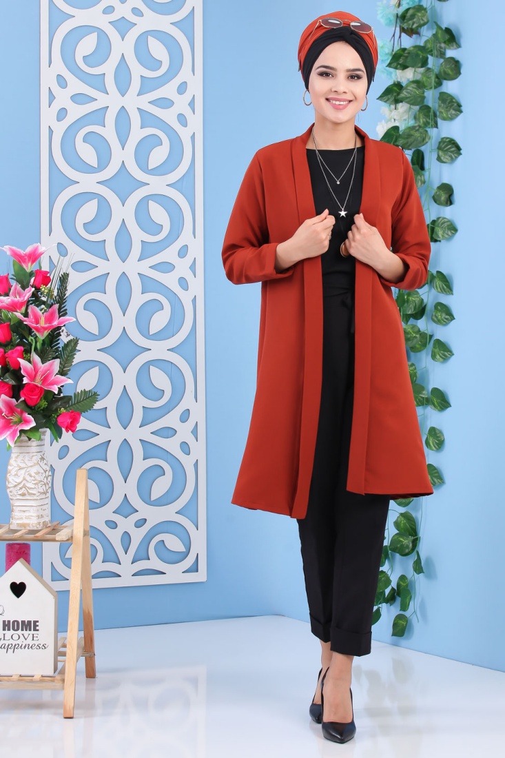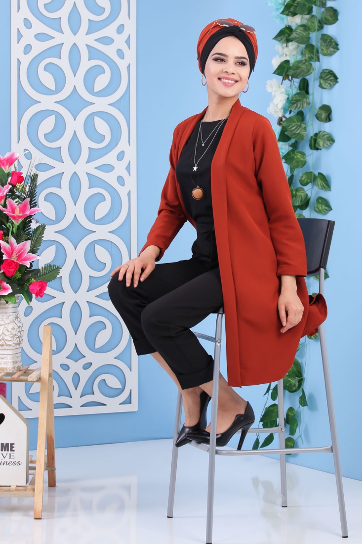 Trench coat Long pour femme (Vetement Mode Musulmane en ligne) - Couleur brique - REF. 30879 (29.90 €)