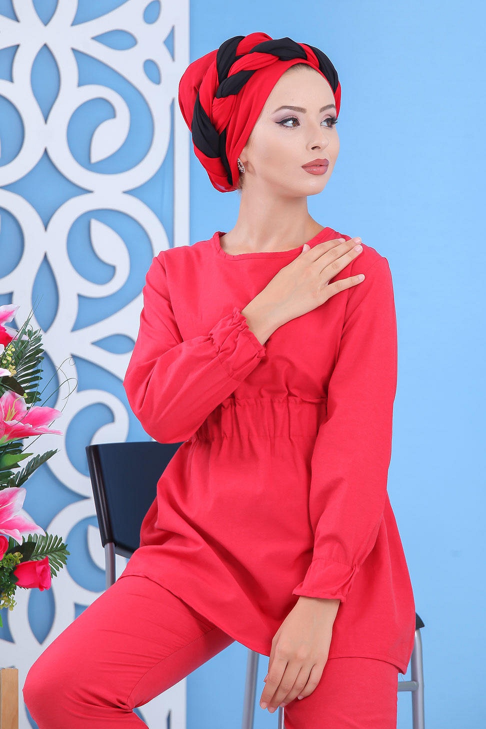 Ensemble tunique, col arrondi, taille cintrée élastique, manches longues finition élastiques aux poignets assorti de son pantalon taille élastique, coupe droite. Ce modèle est une valeur sure de confort qui vous assurera un look chic au quotidien.