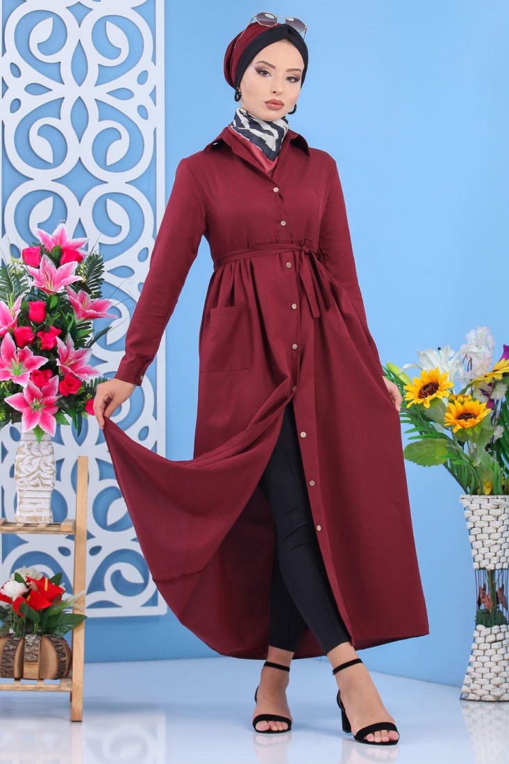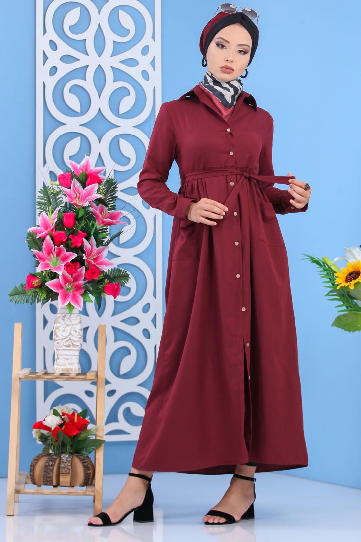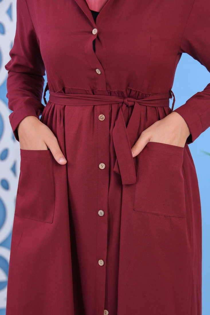 Robe longue boutonnée chic pour femme - Couleur Bordeaux Vetement & Accessoire