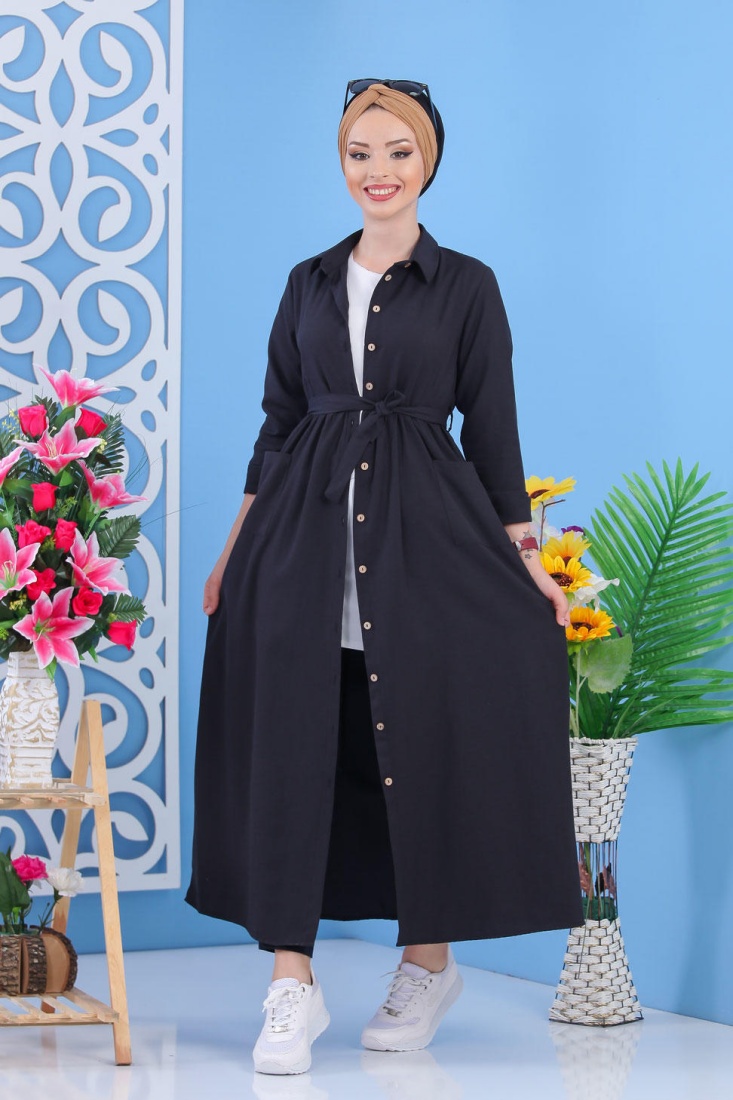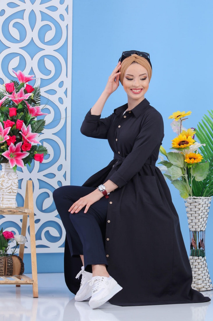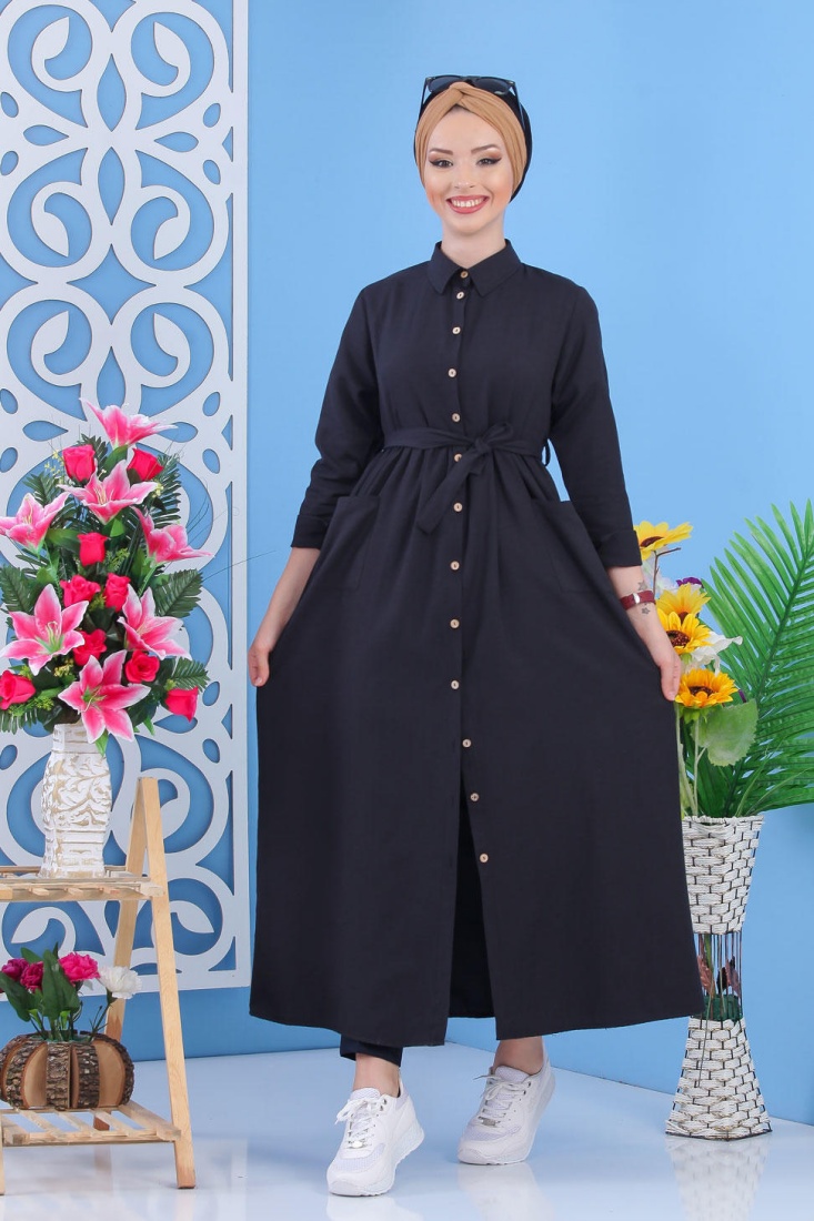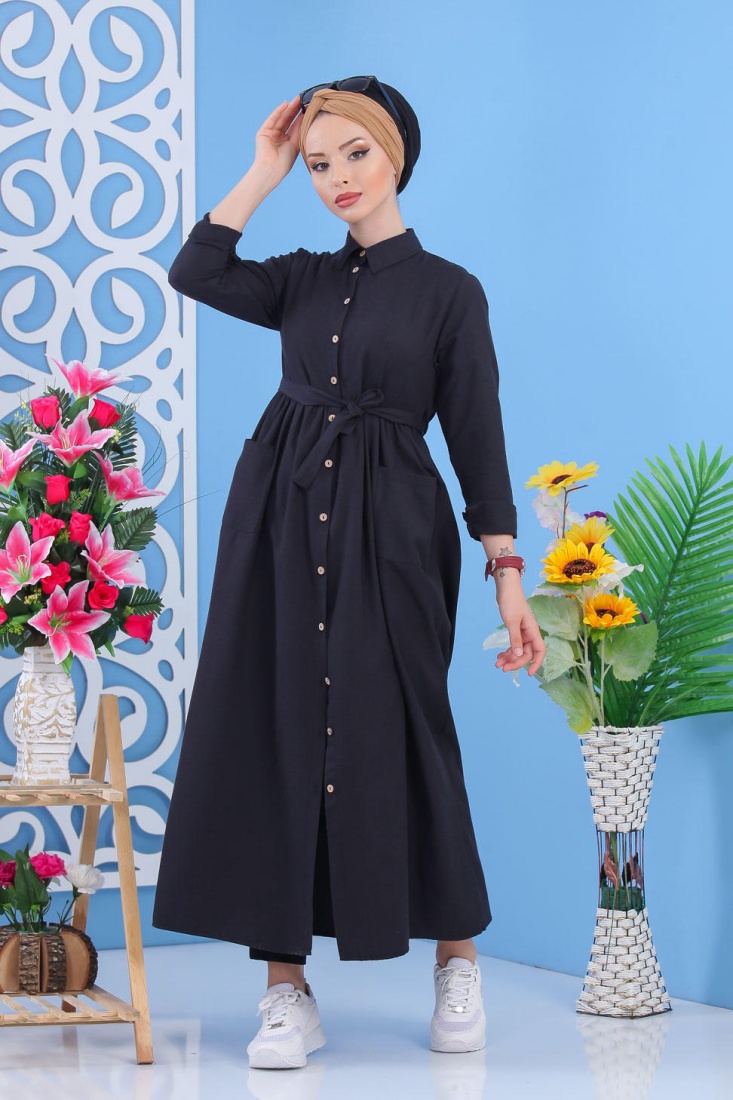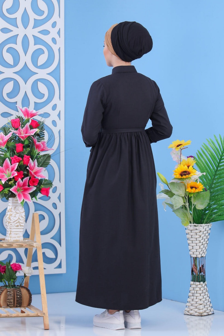 Belle robe longue mastour boutonnée pour femme - Couleur Noir Vetement & Accessoire