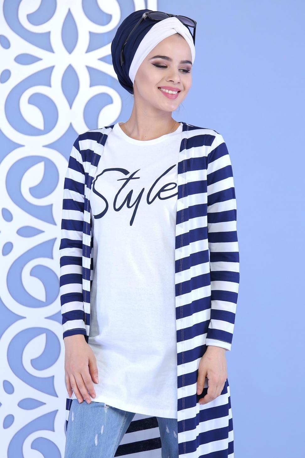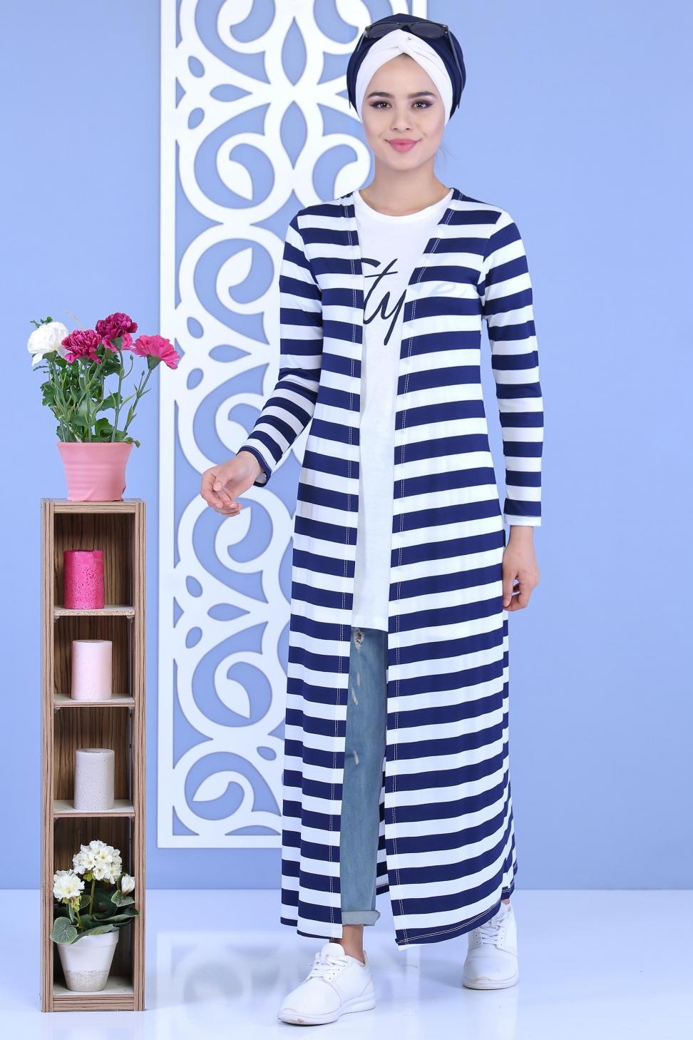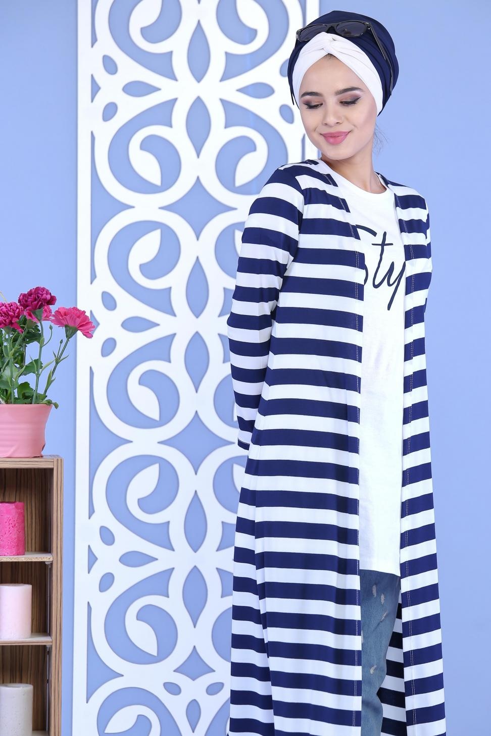 Gilet long avec capuche pour femme musulmane - Couleur bleu marine - REF. 37545 (29.90 €)