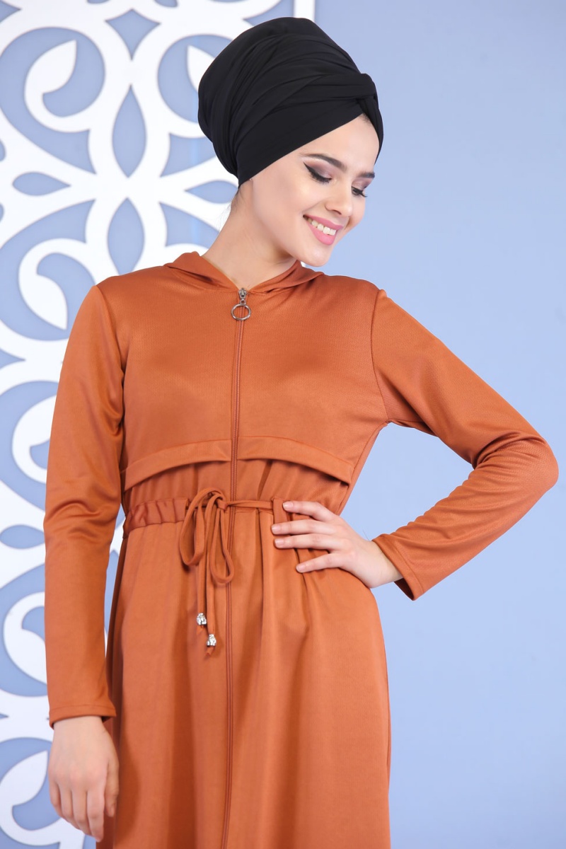 Robe longue zippee a capuche pour femme - Couleur rouille