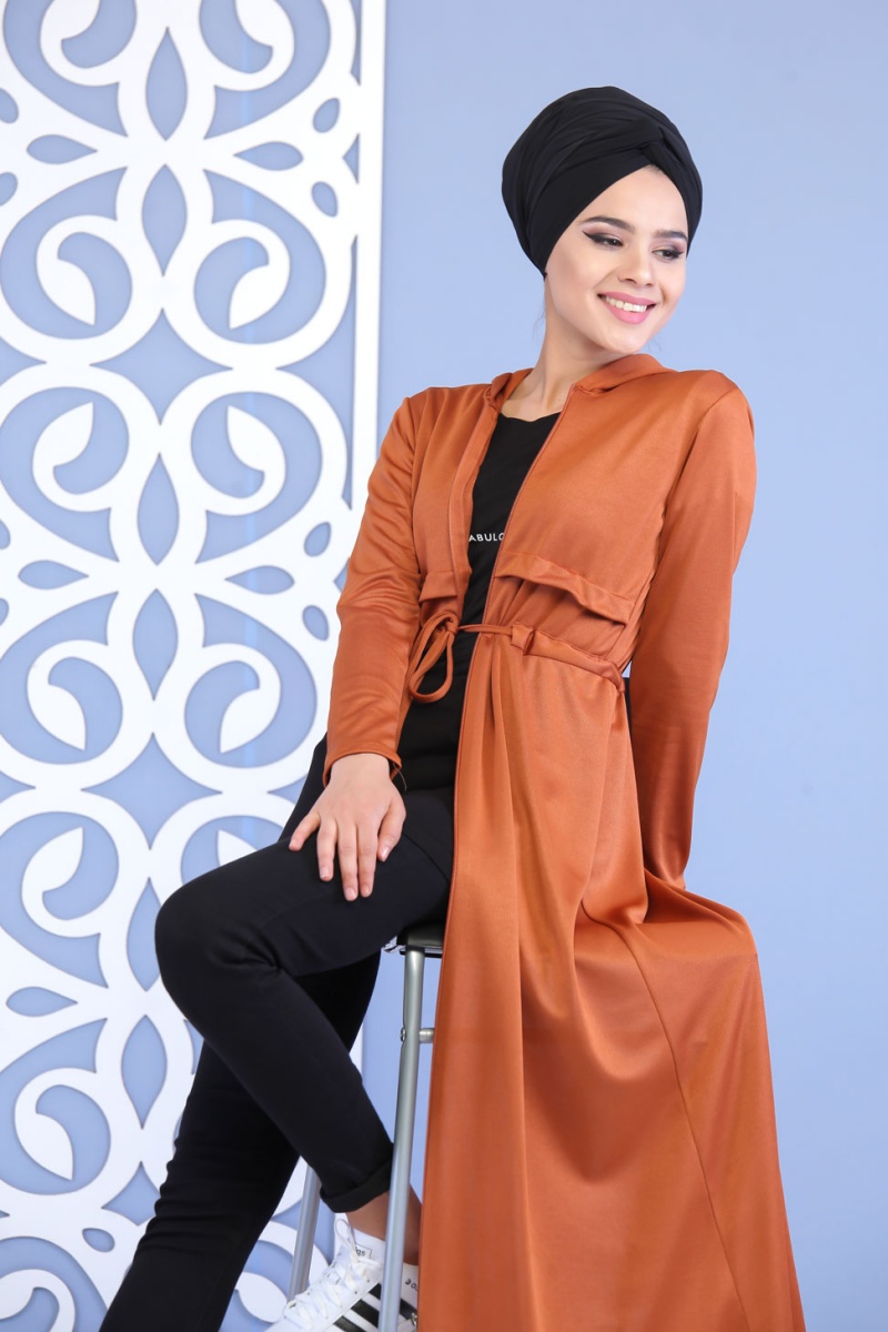 Robe longue zippée à capuche pour femme - Couleur rouille Vetement & Accessoire