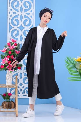 Cardigan à lacets pour femme (Boutique Musulmane pas cher - Hidjab en Ligne France) - Couleur noir