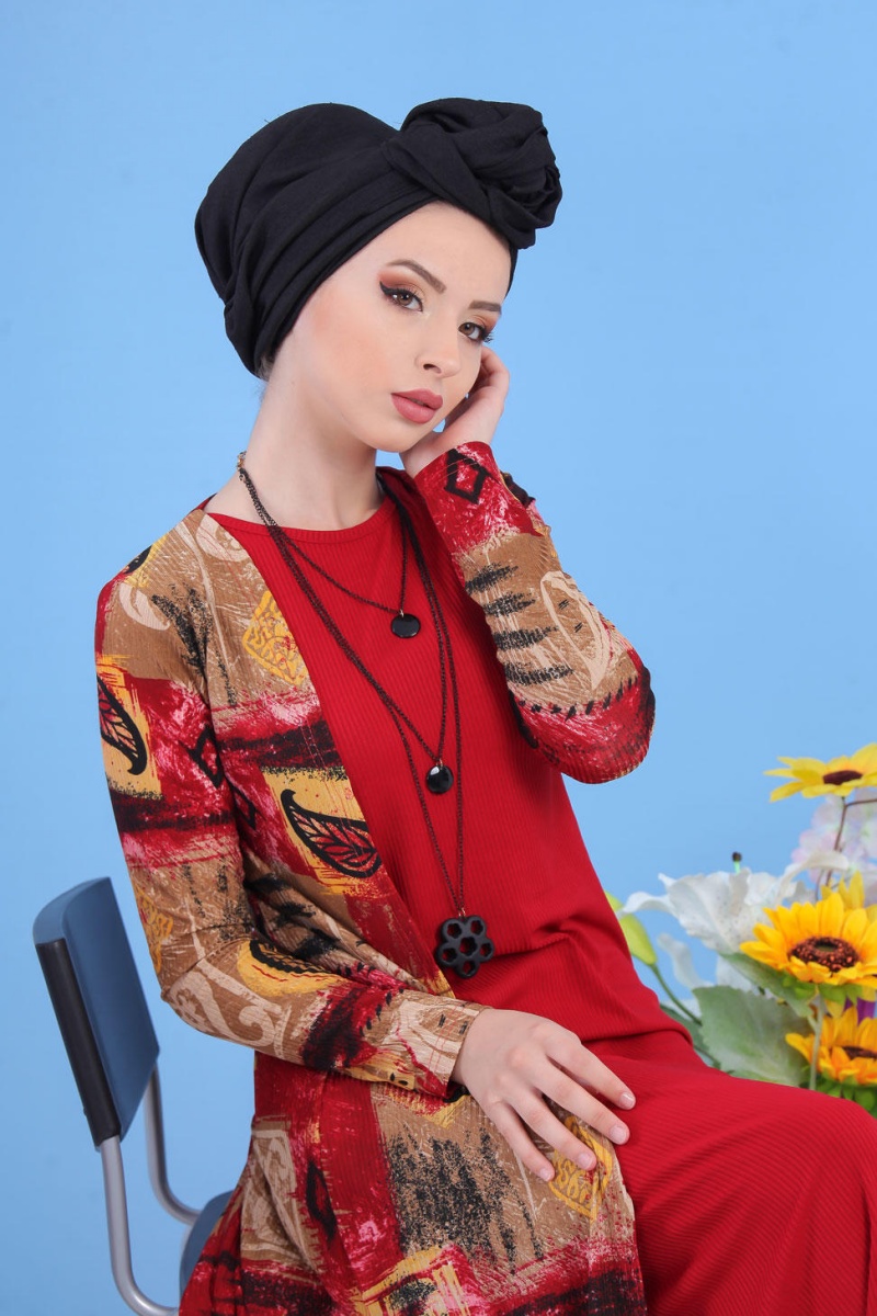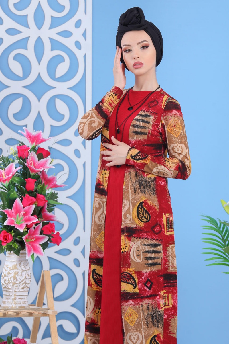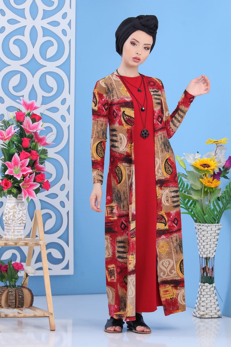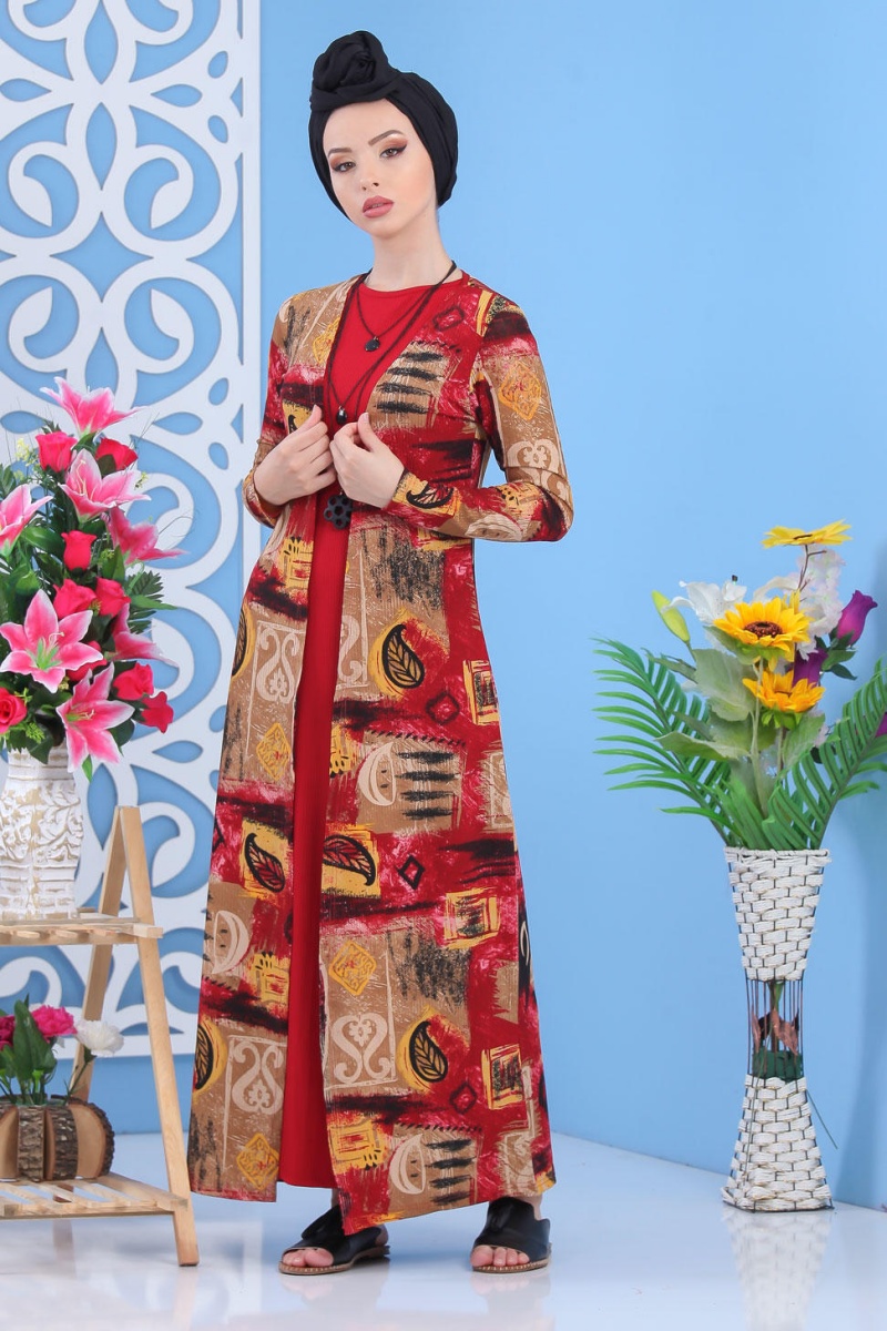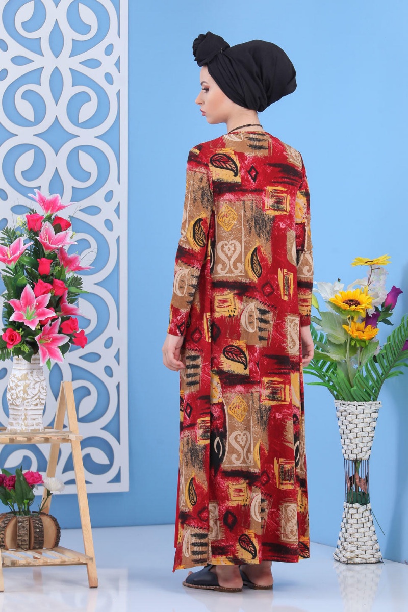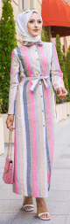 Ensemble deux pièces robe + kimono tissu aspect strié.