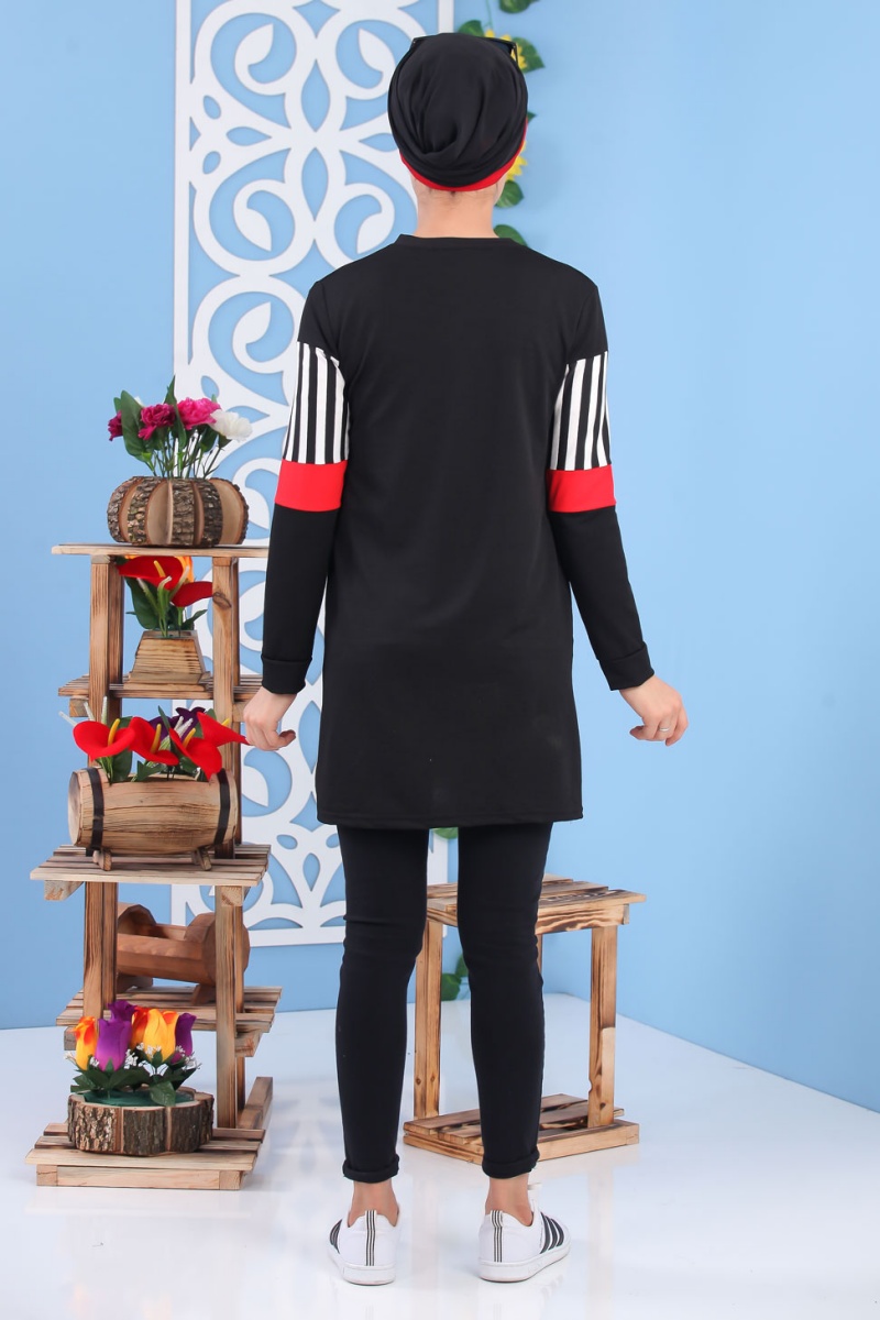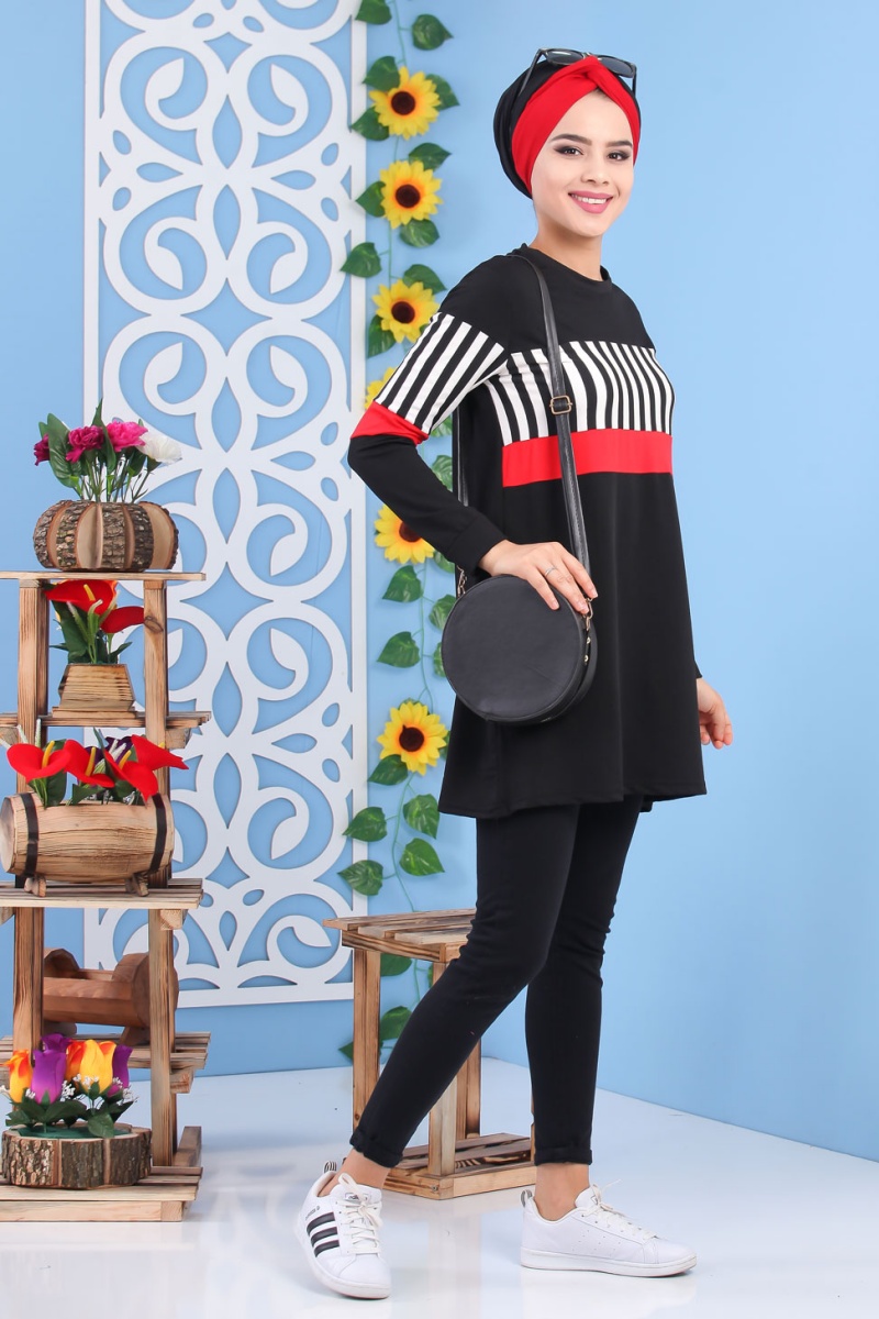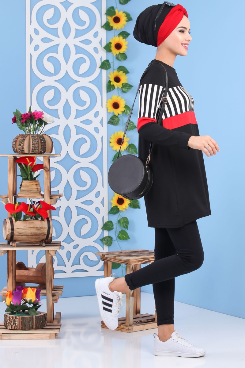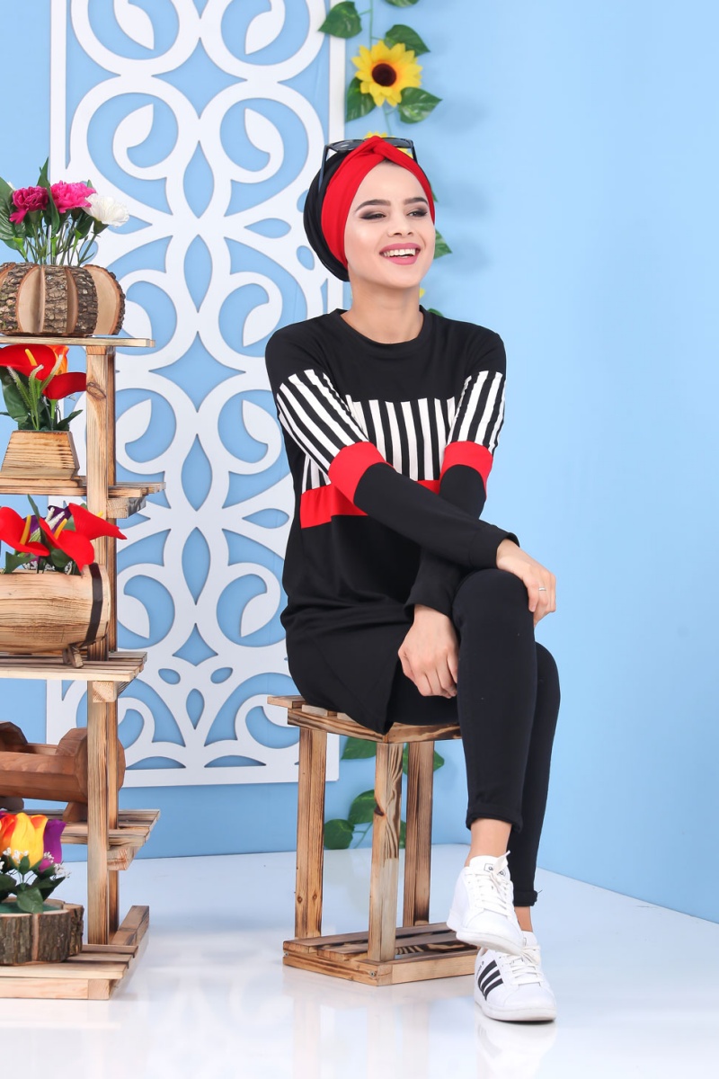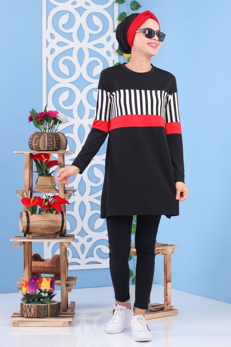 Tunique noire et rouge à rayures pour femme (Tenue de sport style turque vente en ligne) Vetement & Accessoire