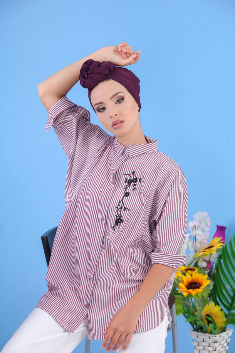 Chemise brodée à rayures prunes pour femmes Vetement & Accessoire