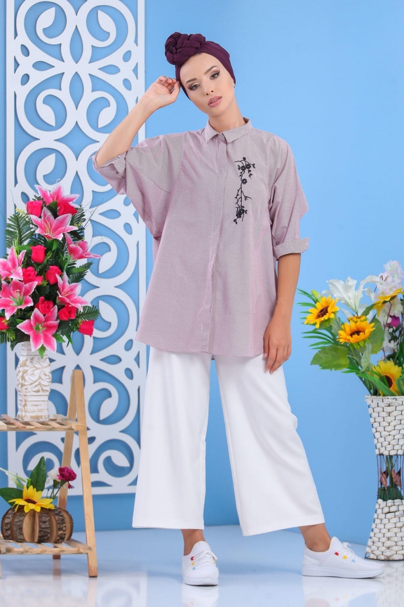 Tunique-Chemise ample boutonnée (Vetement décontracté femme voilée) - Couleur blanche - REF. 33195 (25.00 €)