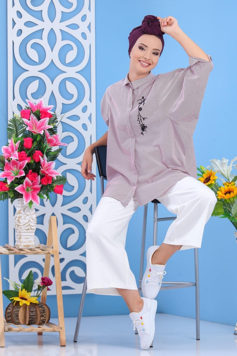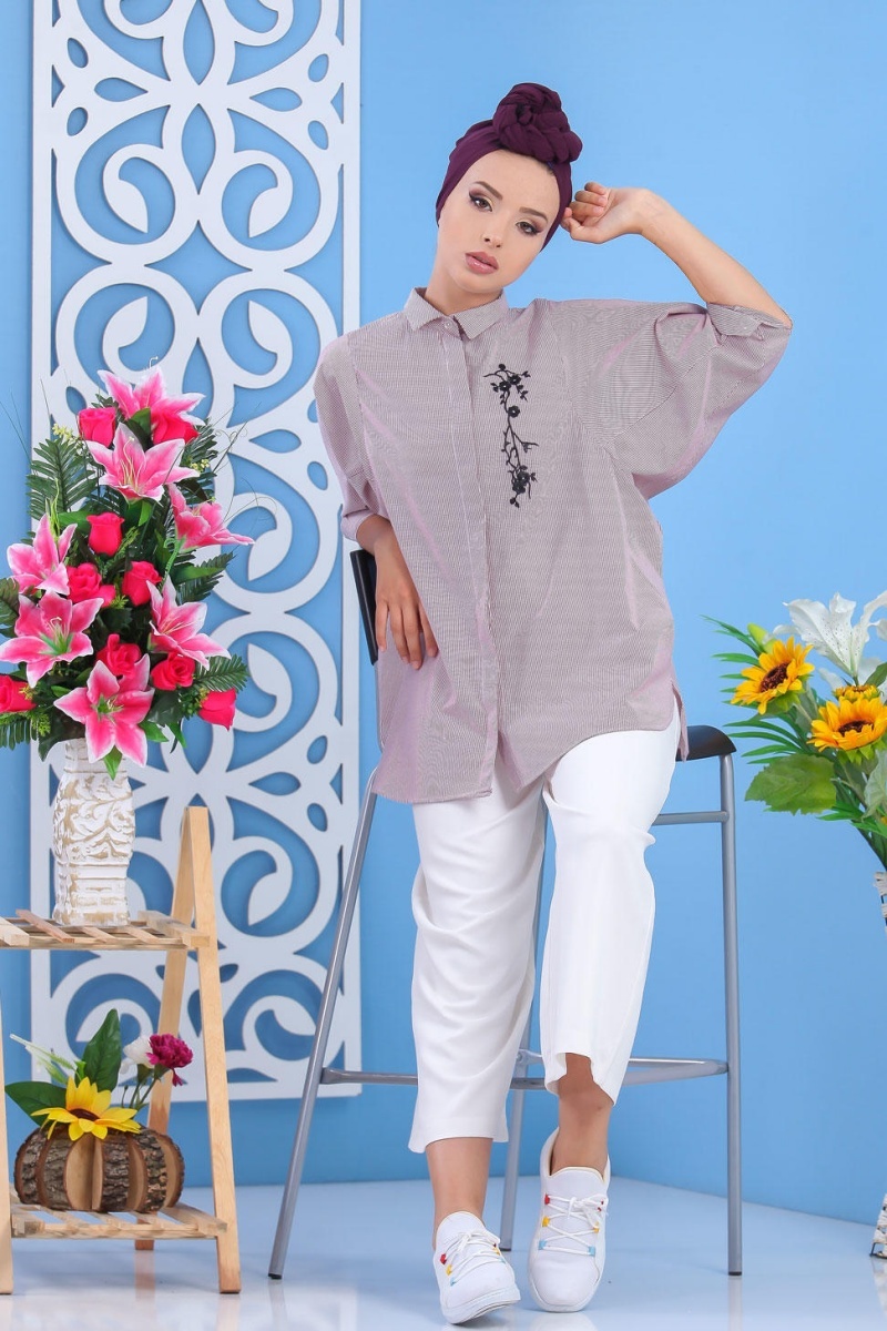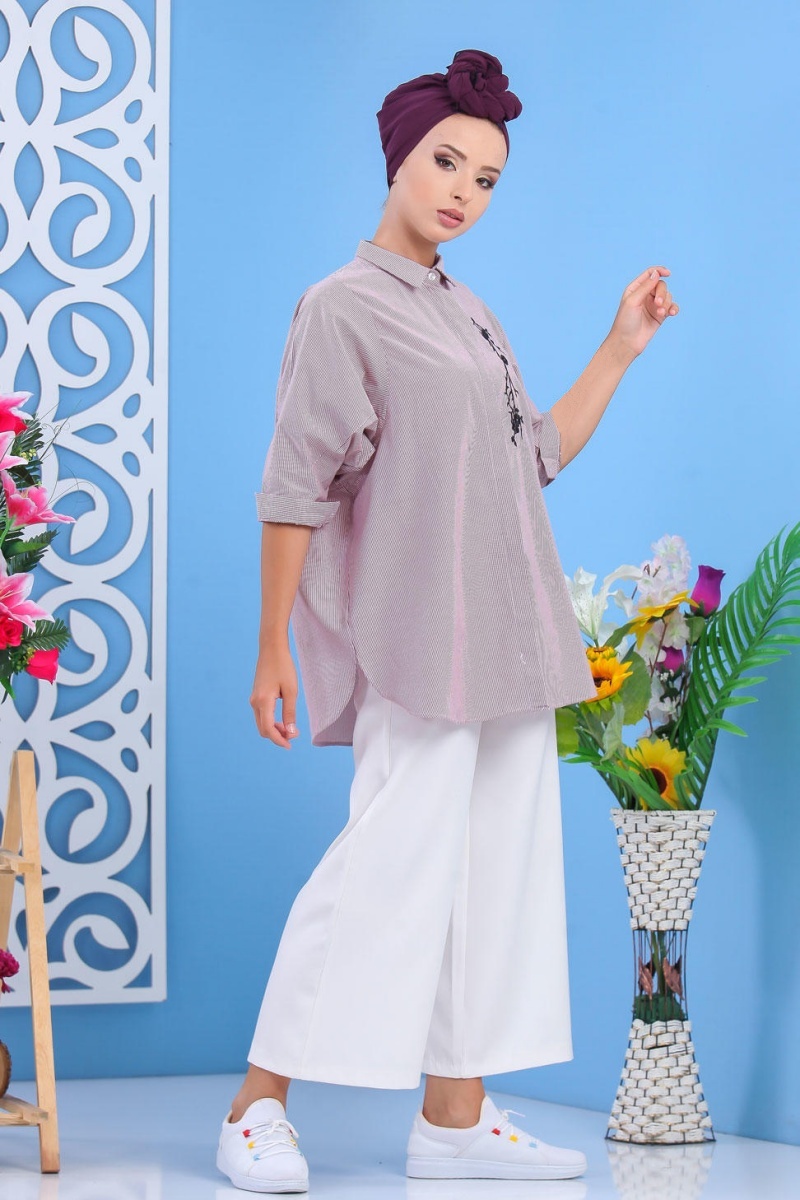 Chemise ample pour femme - Brodée à rayures bleues Vetement & Accessoire