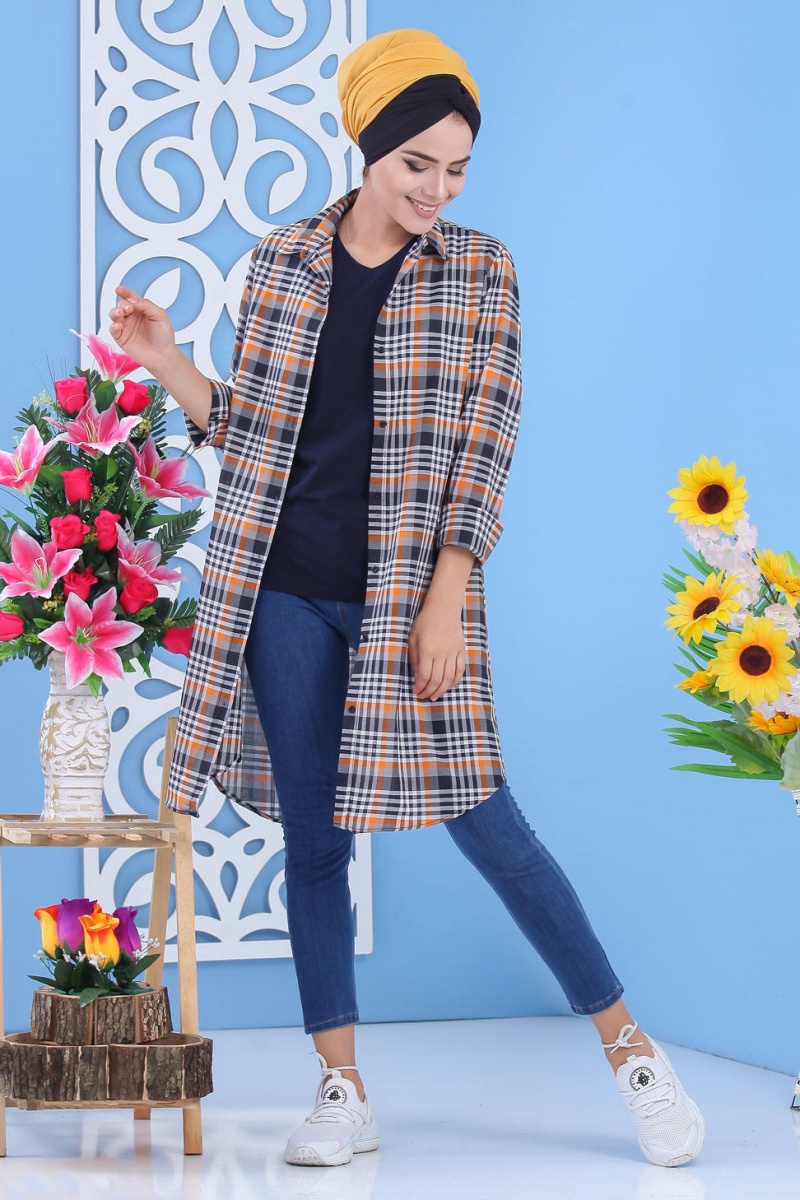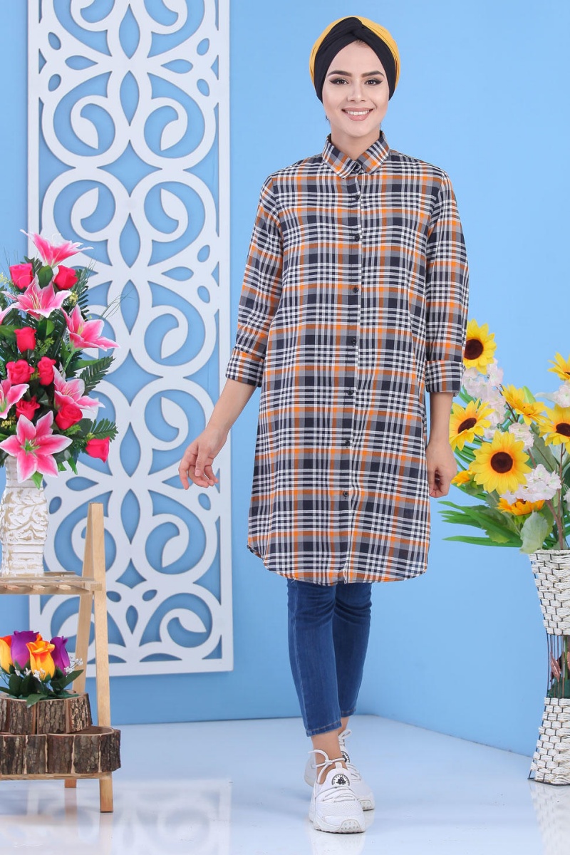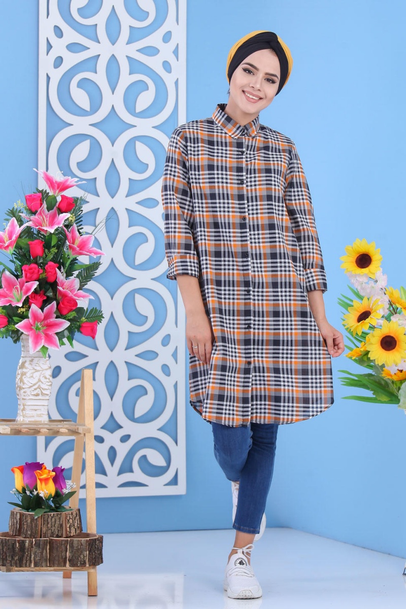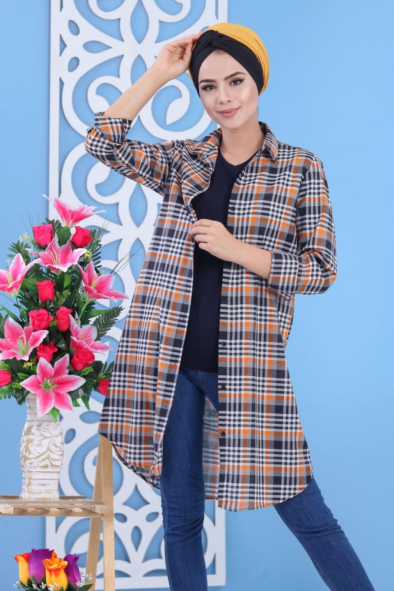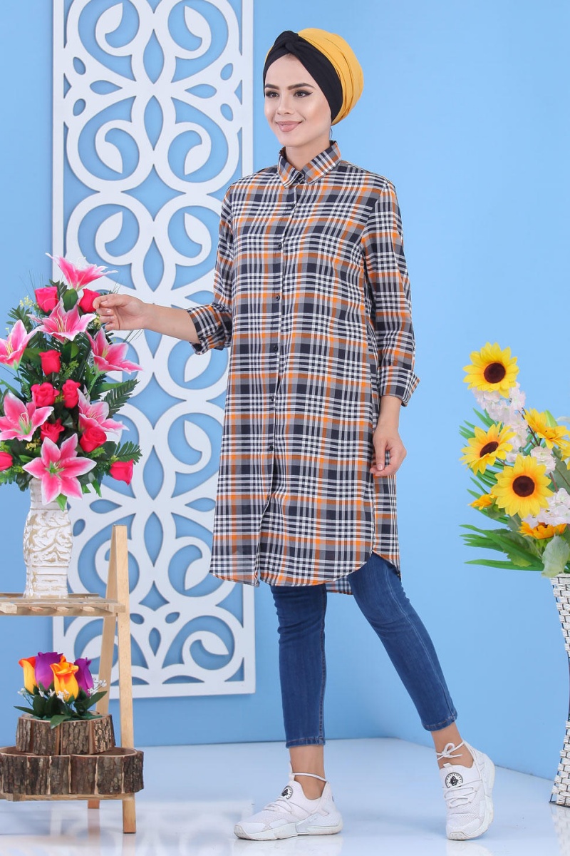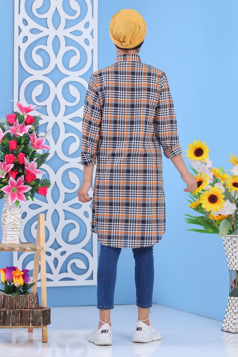Chemise longue, col chemise, manches finition boutons aux poignets, coupe légèrement évasée, extrémités arrondies, tissu léger. Ce modèle reste un basique et indémodable qui se porte en toute saison et diverses occasions.