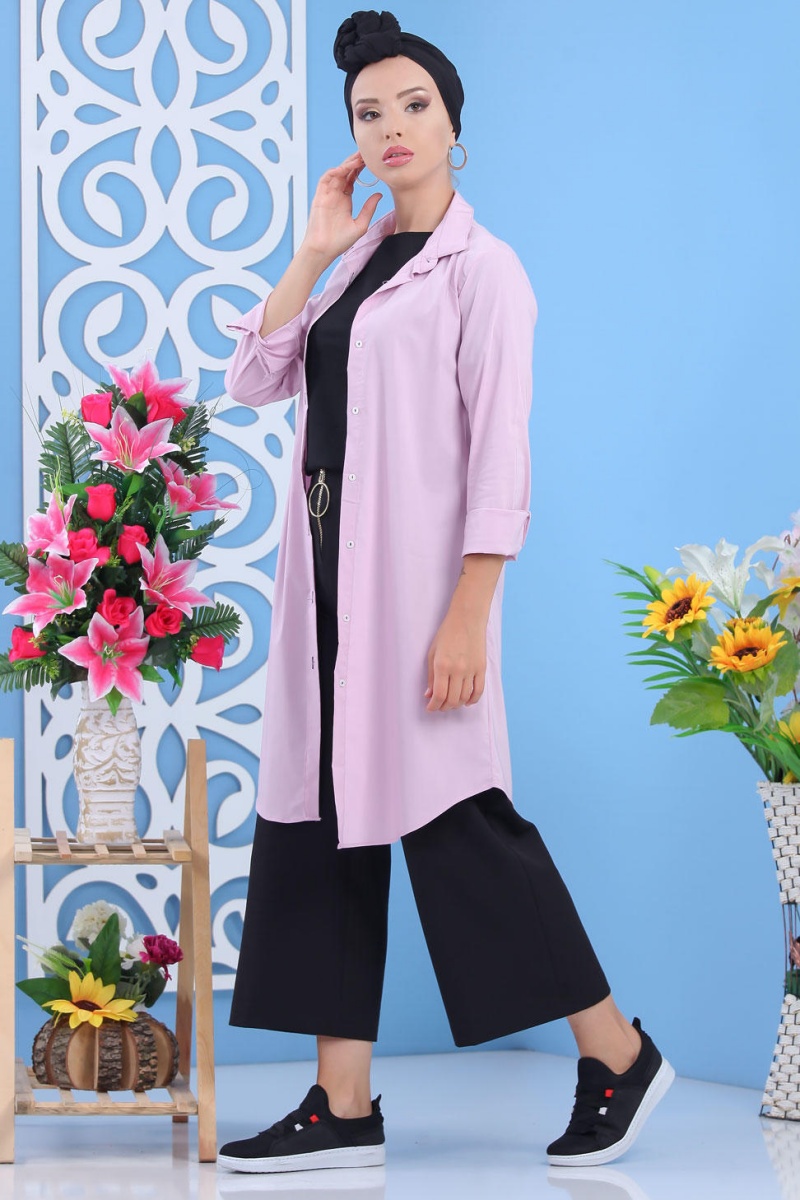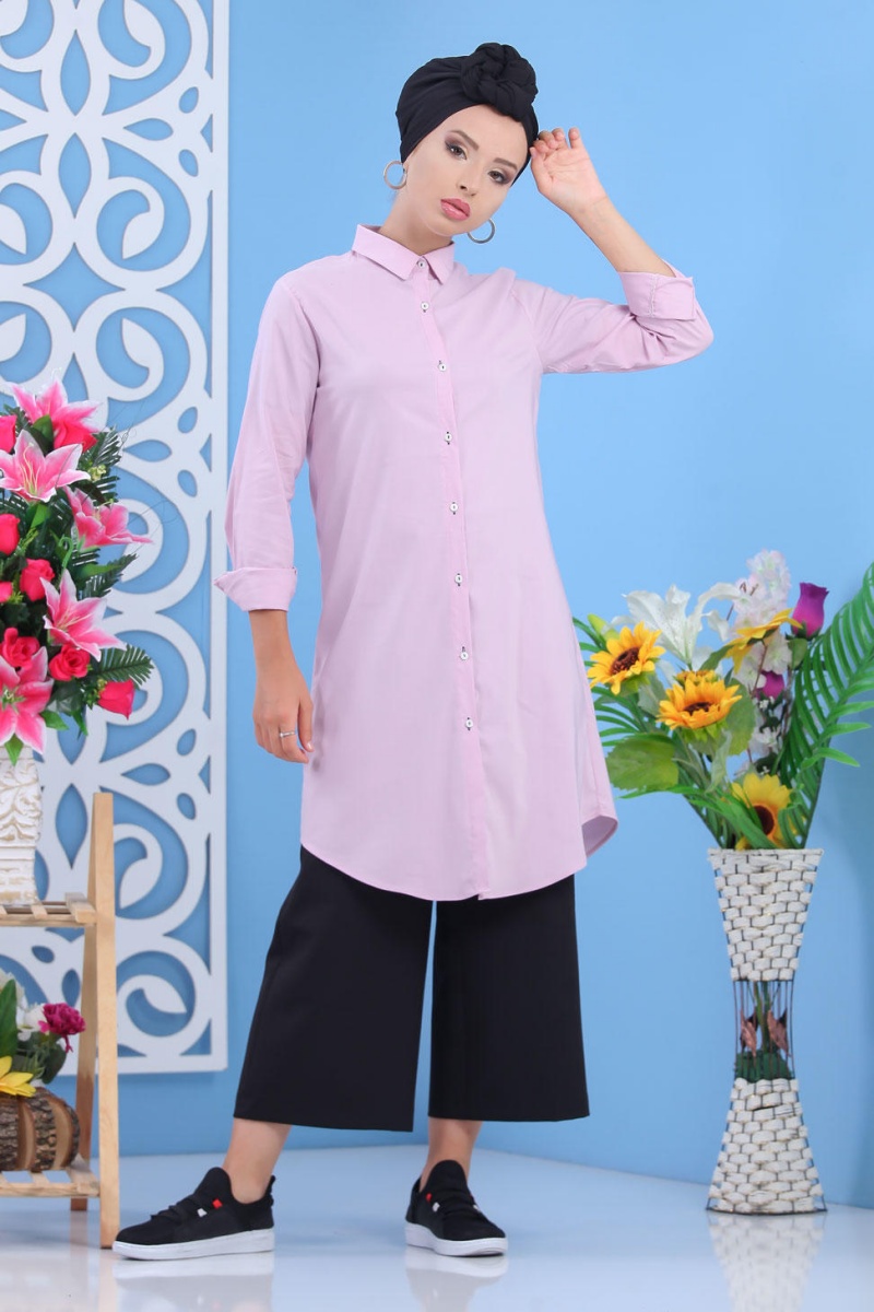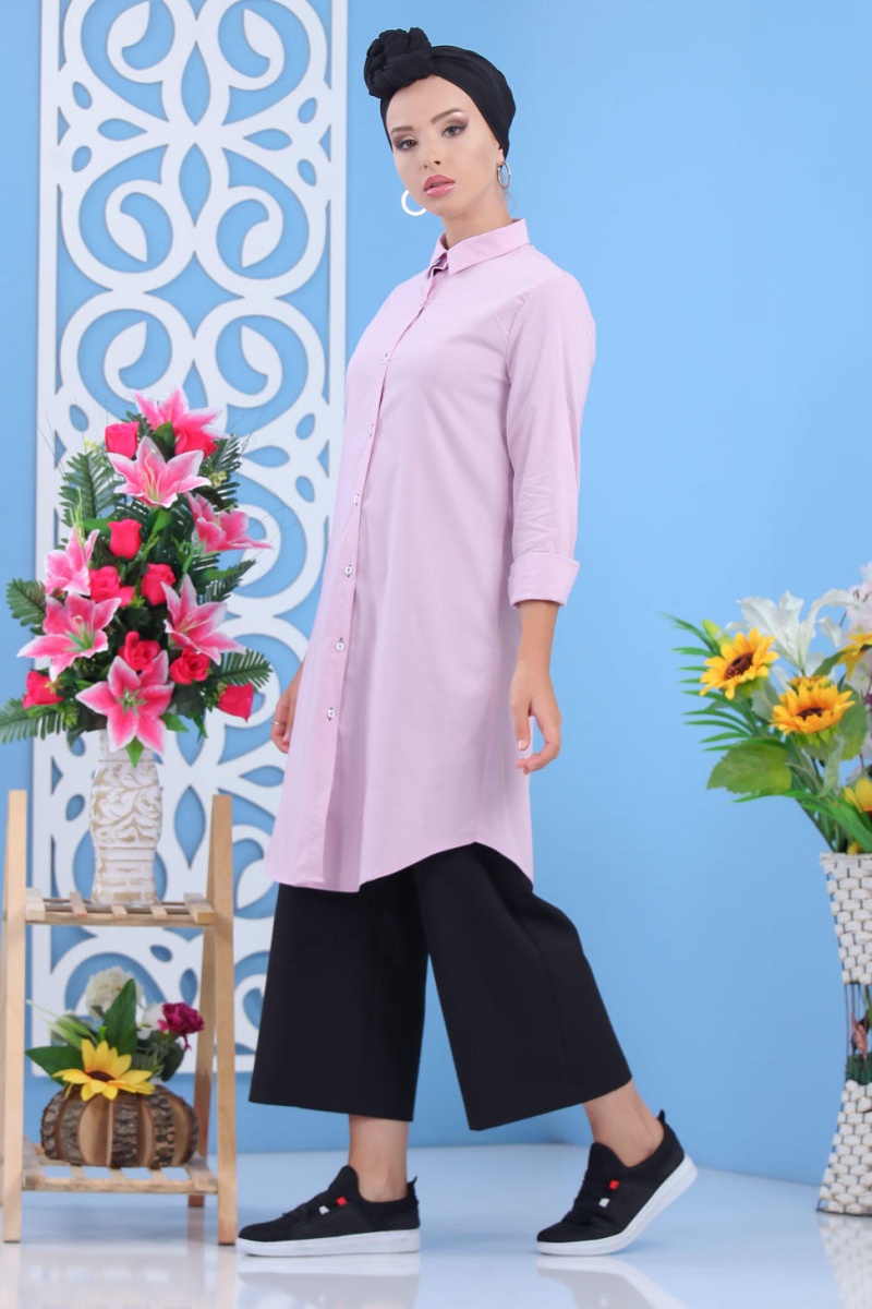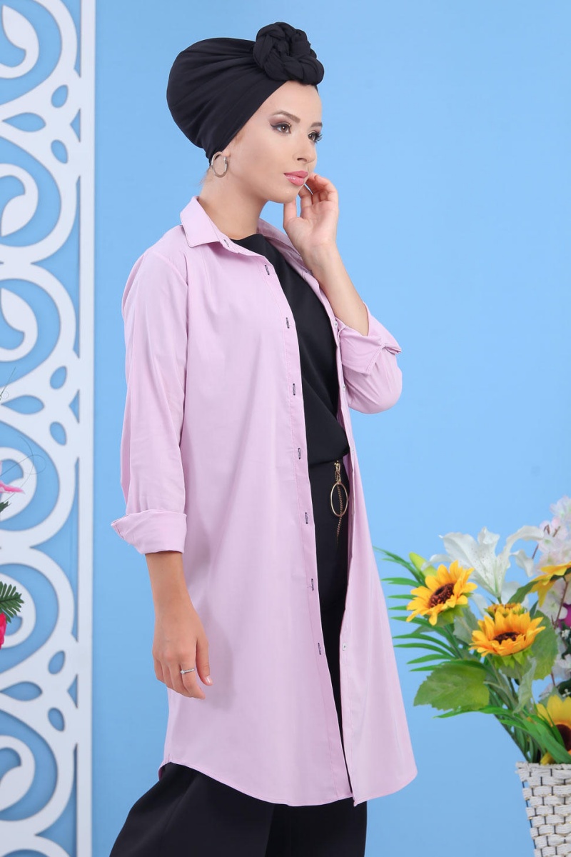 Chemise longue boutonnée nouvelle saison (Vêtement ample pour femme) - Couleur rose - REF. 34570 (24.90 €)
