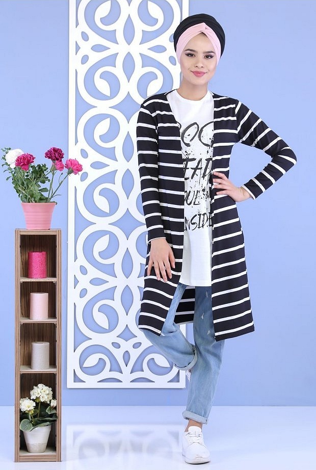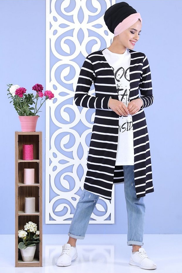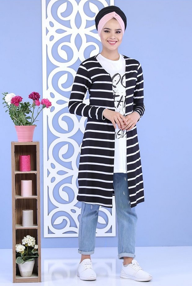 Tunique oversize (Vêtement ample pour femme voilée) - Couleur Noir et blanc - REF. 36428 (26.90 €)