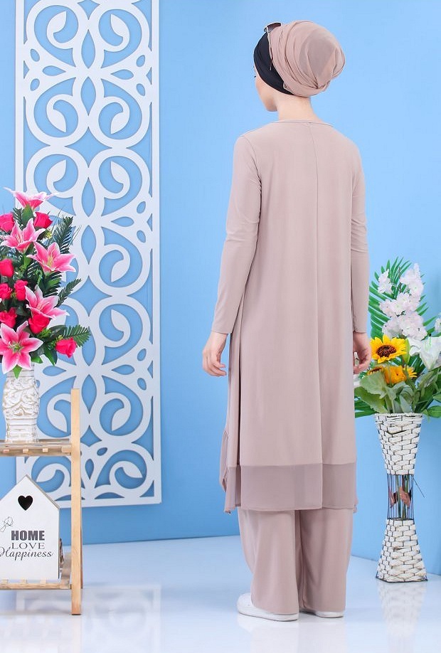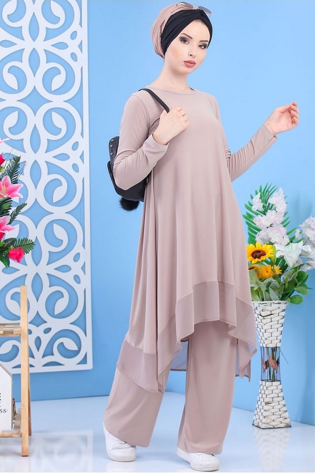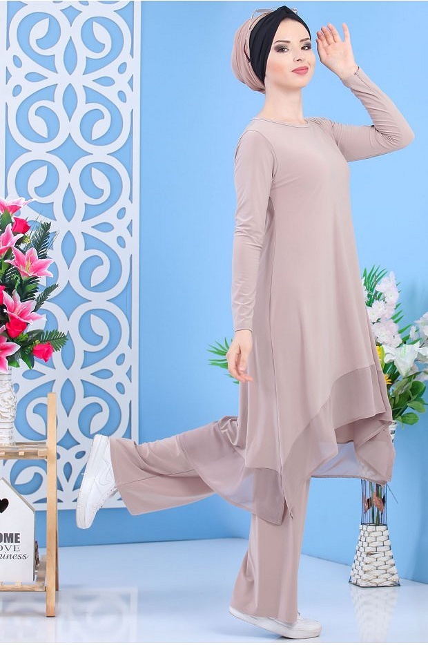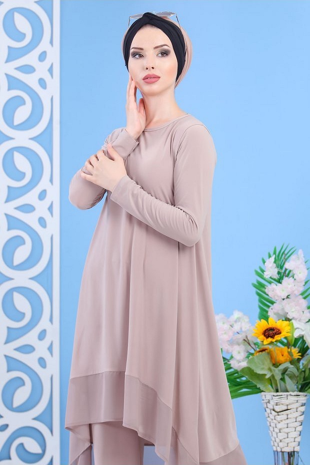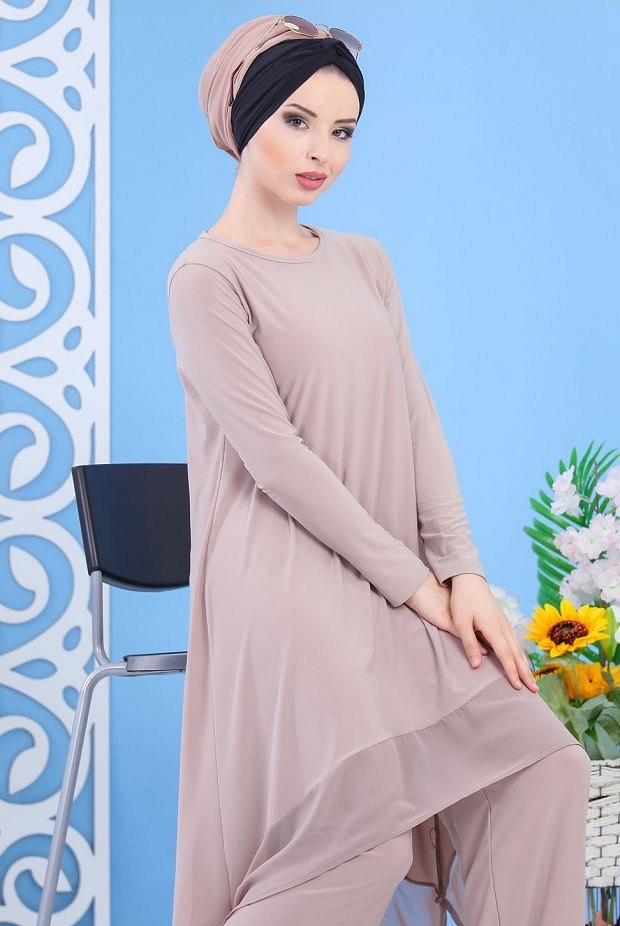 Ensemble tunique et pantalon assorti pour femme (Tenue décontractée moderne Hijab) - Couleur kaki - REF. 37762 (32.00 €)