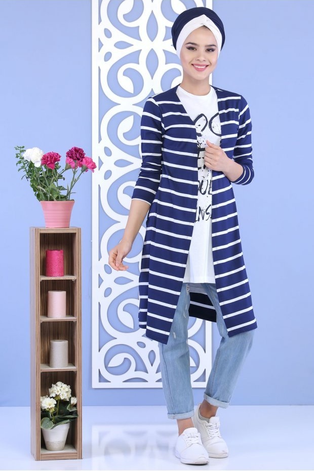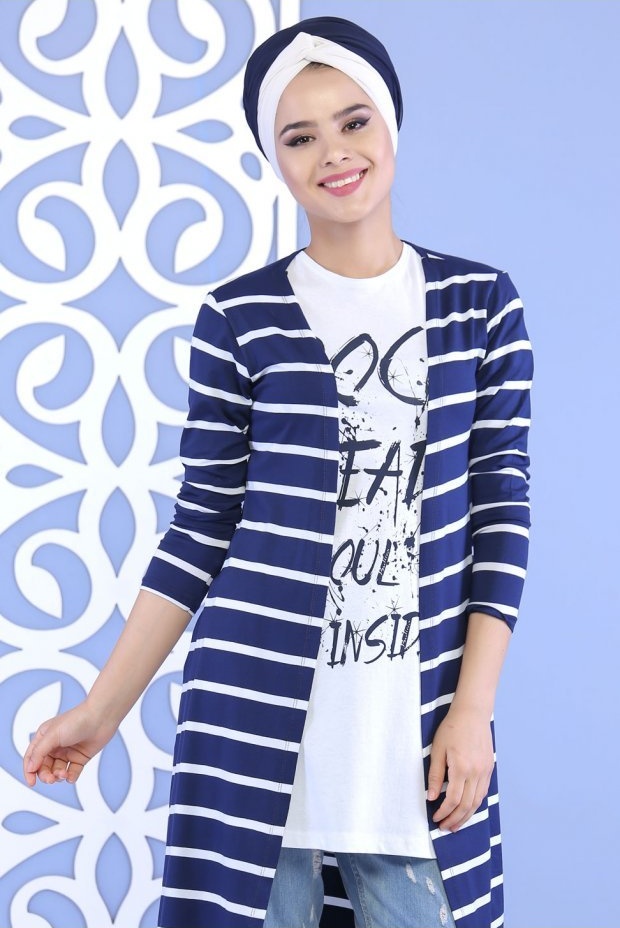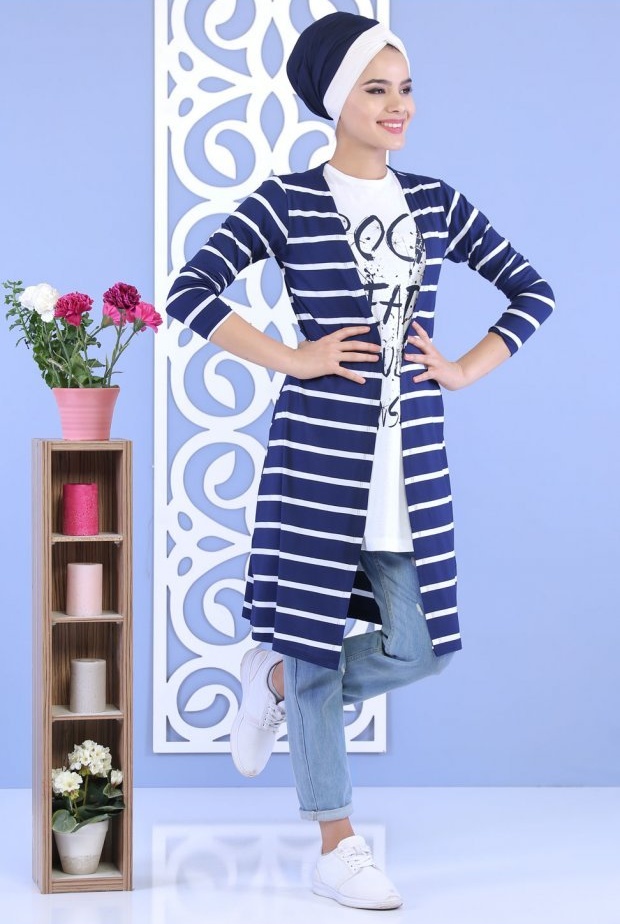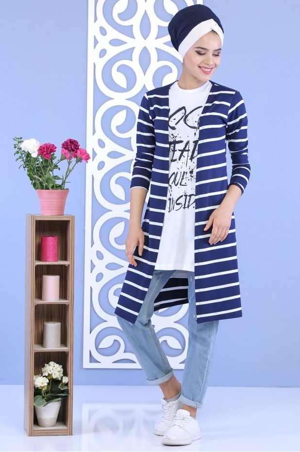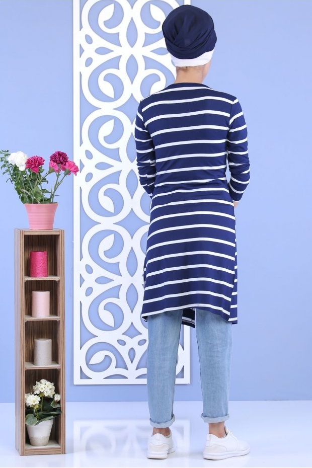 Tunique à rayures (Tenue moderne pour femme voilée) - Couleur bleu marine et blanc - REF. 36462 (19.90 €)