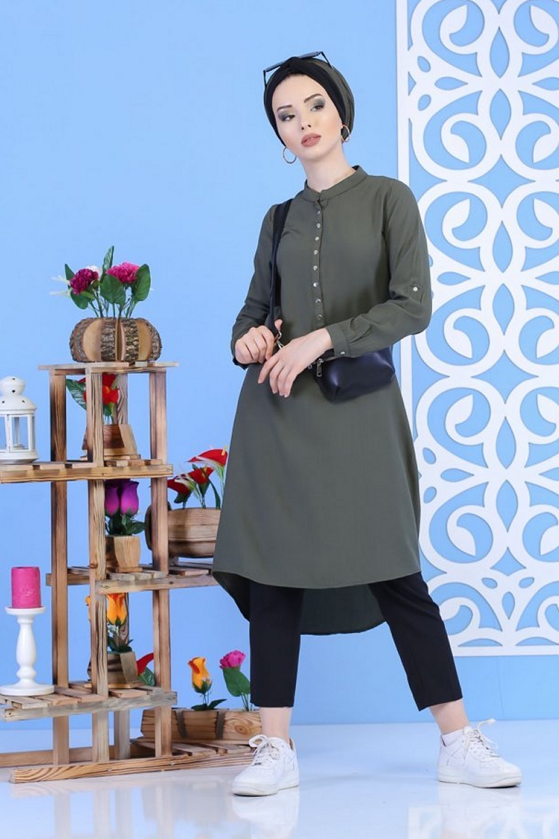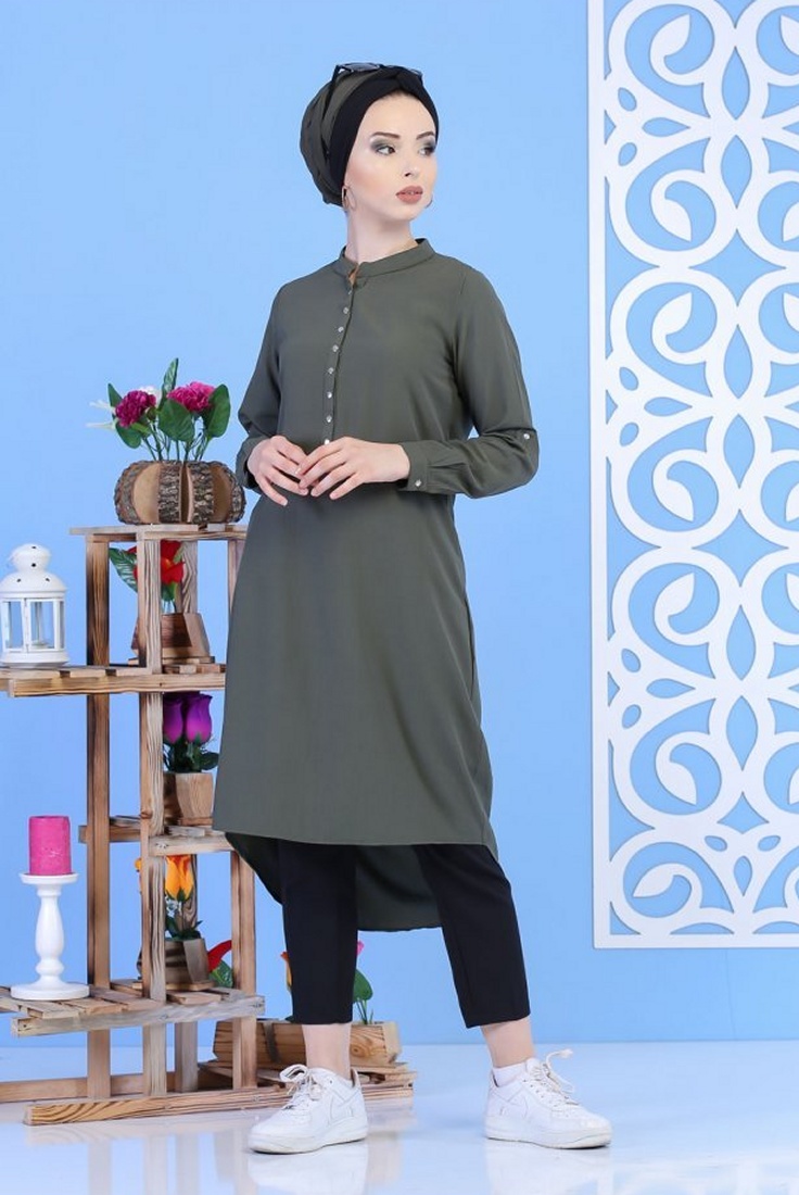 Tunique longue, col Mao fermeture pression, manches longues retroussables grâce à des pattes boutonnées, coupe droite plus longue et arrondie à l'arrière. Ce modèle au tissu léger s’accommodera avec beaucoup de vos vêtements, en l'achetant vous aurez l’embarras du choix pour porter cette belle tunique.
