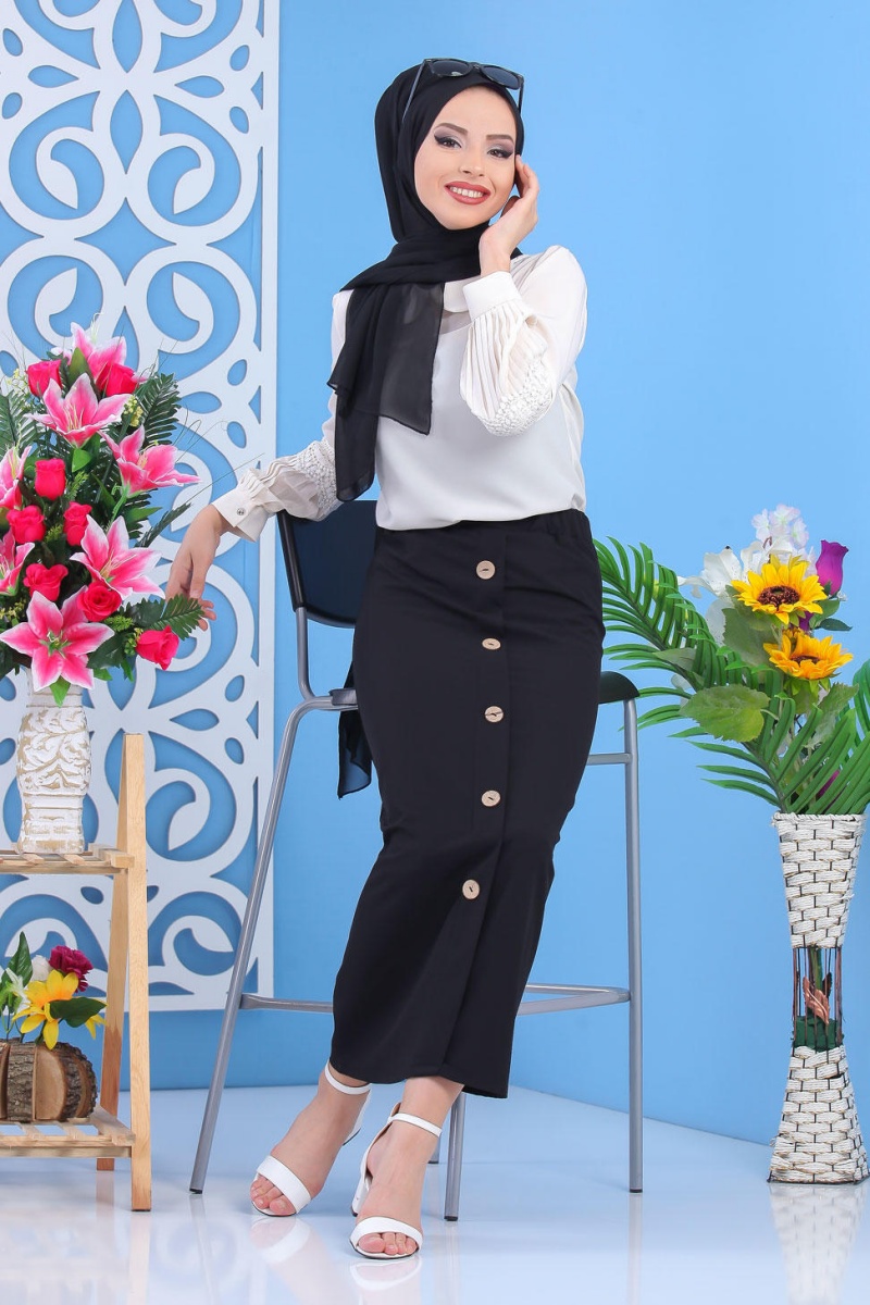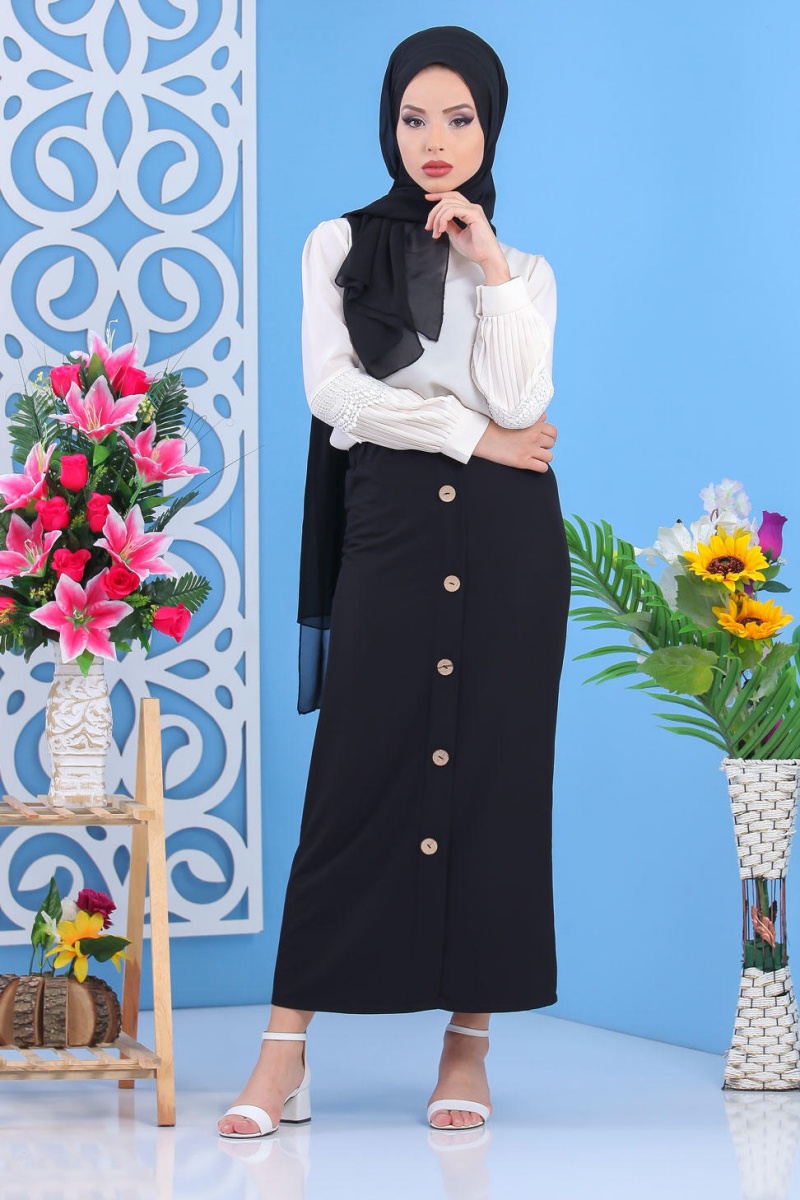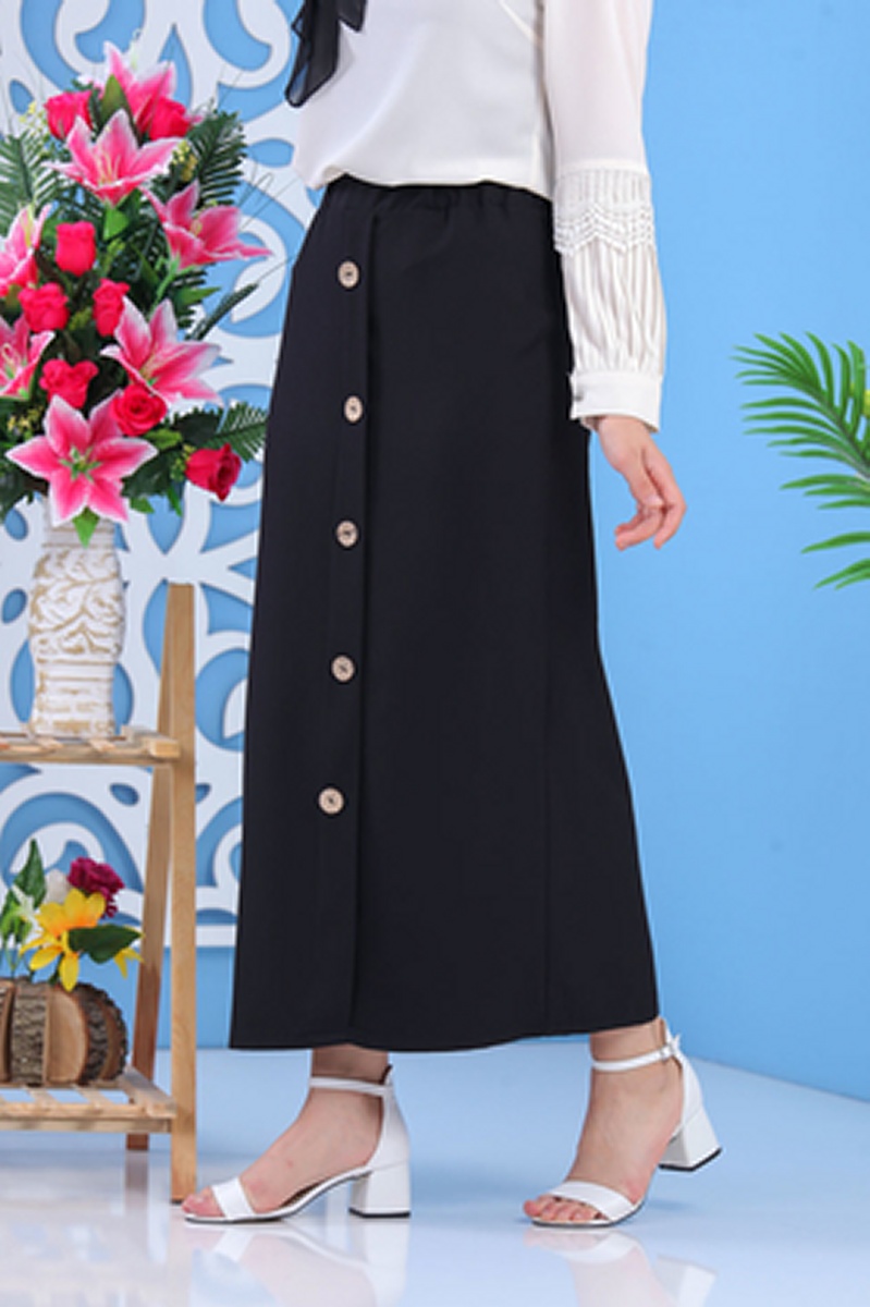 Jupe longue à boutons pour femme - Couleur Noire Vetement & Accessoire