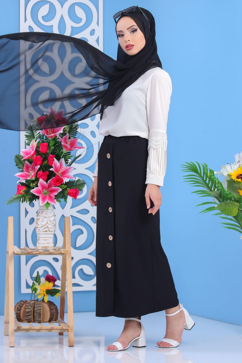 Jupe mi longue pour femme (Vetement Turque en ligne) - Couleur noir - REF. 33257 (18.00 €)