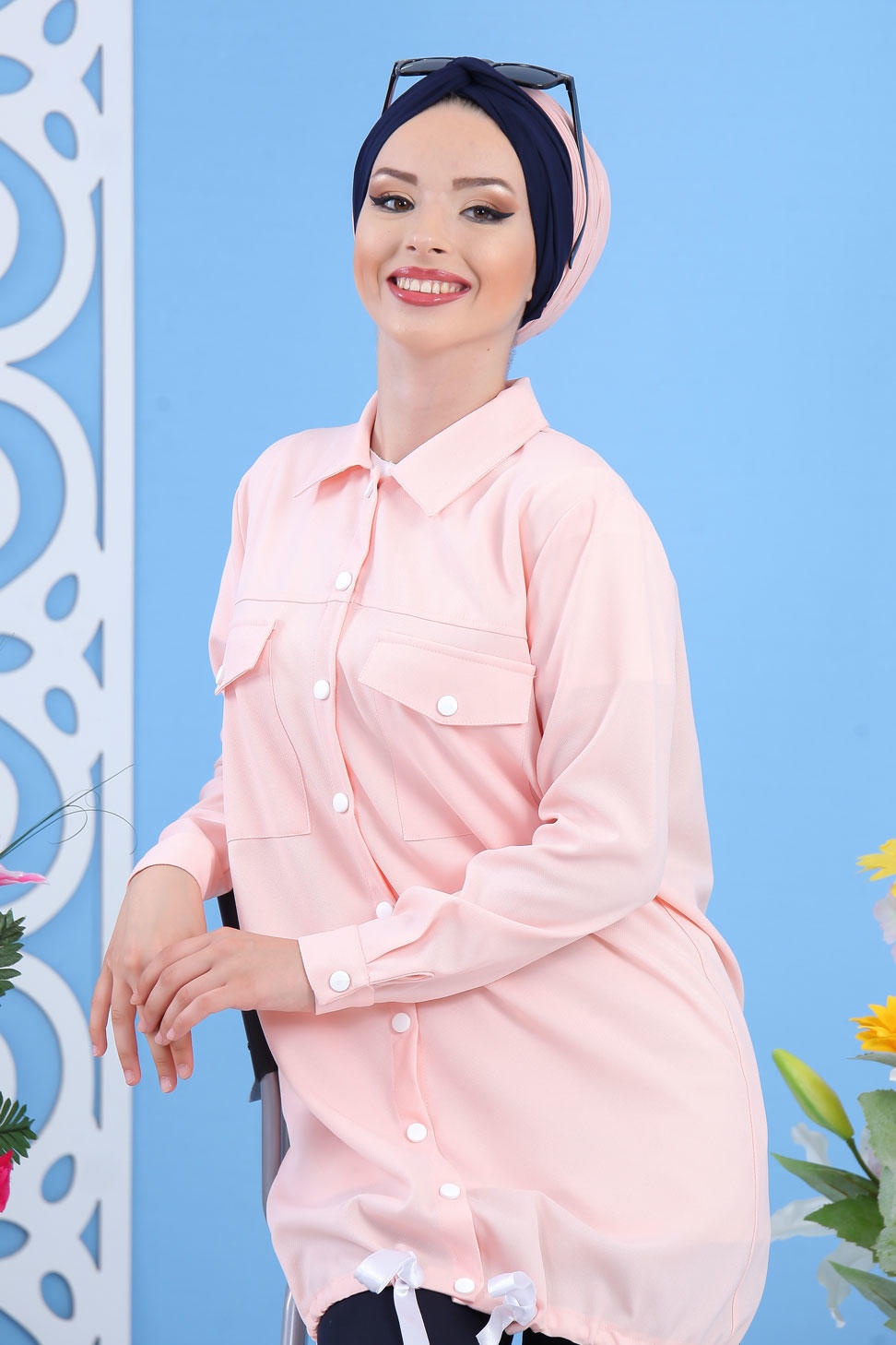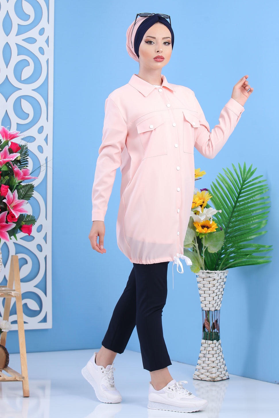 Chemise à gros boutons (Tunique style habillé pour hijab) - Couleur kaki foncé - REF. 35907 (26.90 €)
