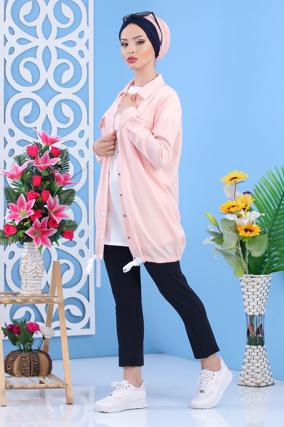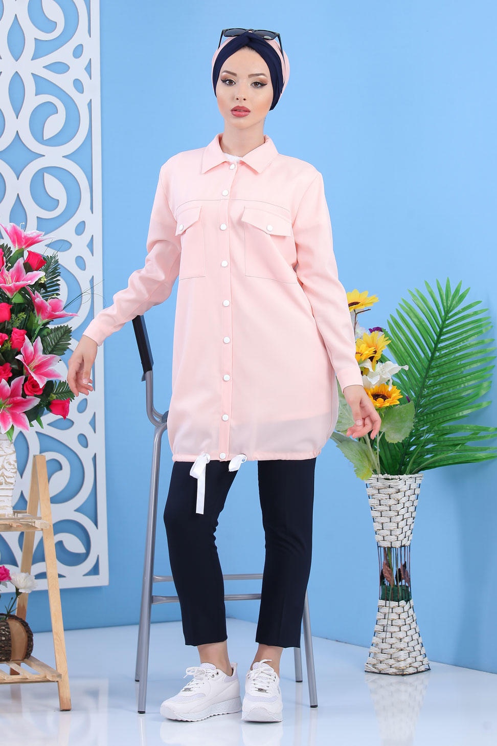Chemise à froufrou (Vetement femme musulmane moderne) - Couleur brique - REF. 34574 (24.90 €)