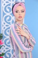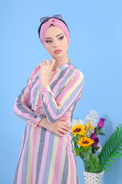 Chemise-Tunique motif fleur (Vêtement pour femme voilée) - Couleur des rayures : rose poudré - REF. 38603 (24.90 €)