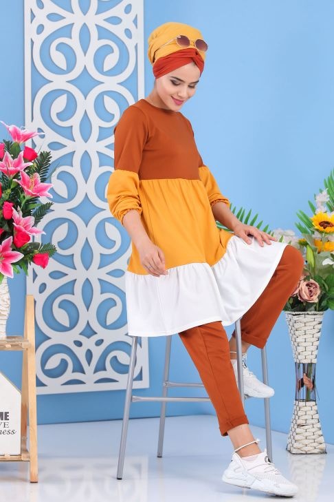 Ensemble décontracté tunique et pantalon (Tenue de Sport Hijab) - Couleur biscuit - REF. 35759 (28.00 €)