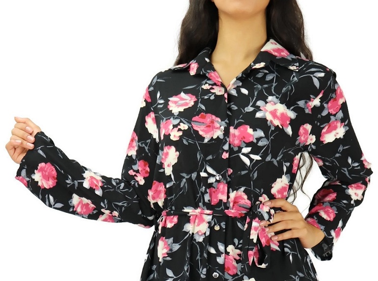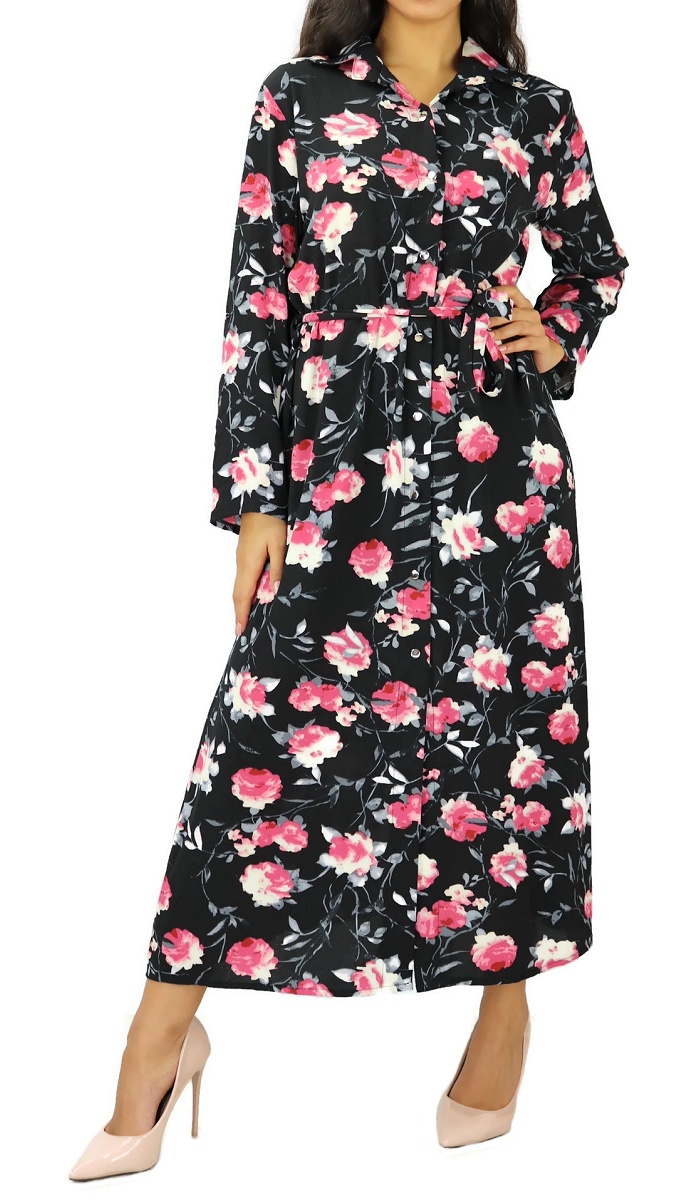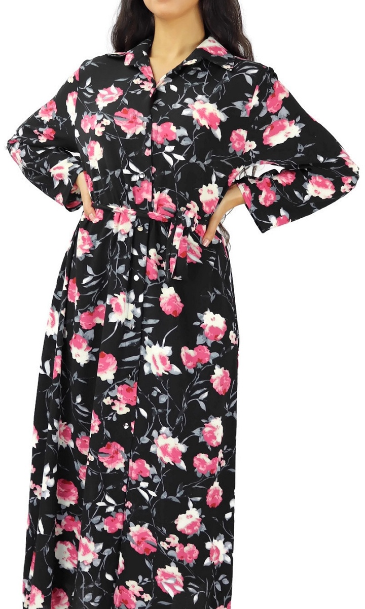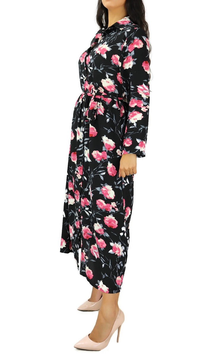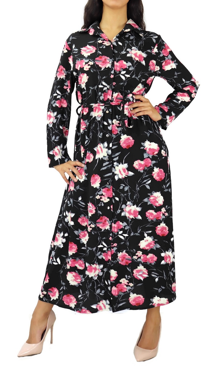 Robe boutonnée à motifs floraux - Couleur Noir Vetement & Accessoire