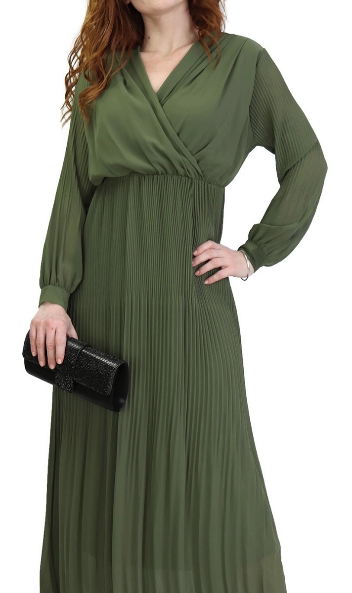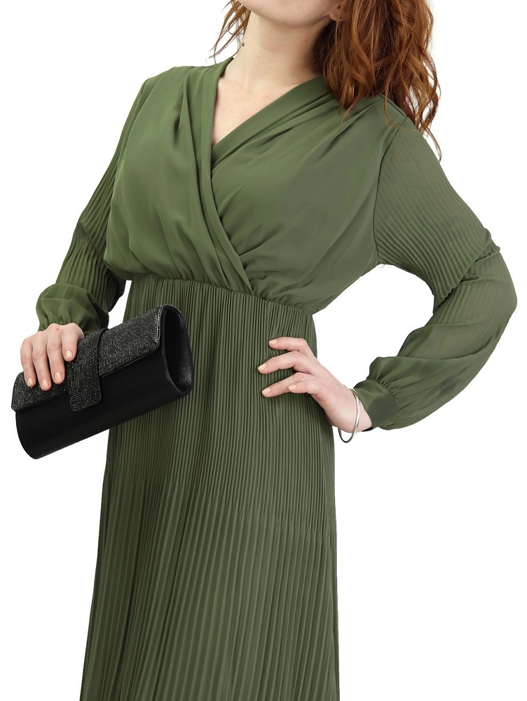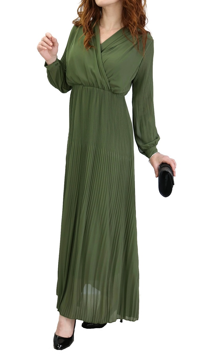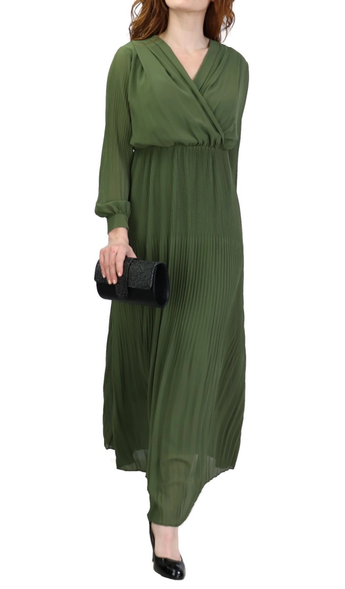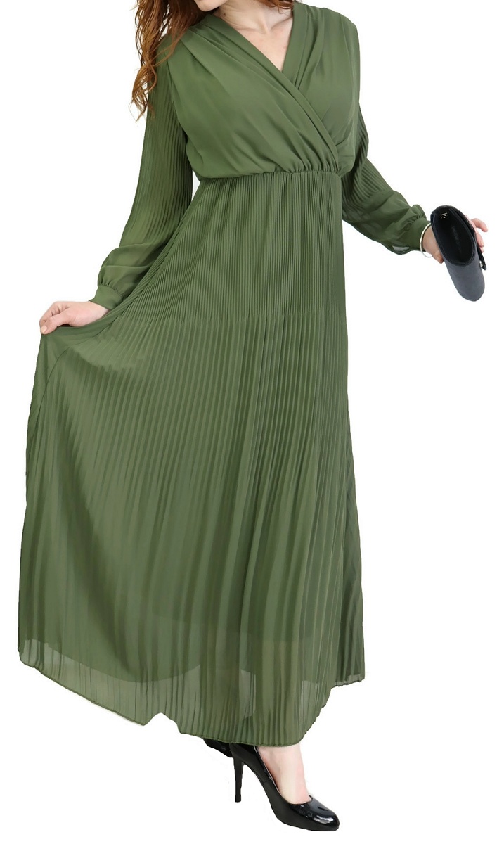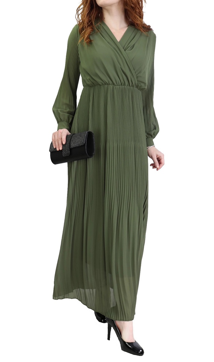 Robe longue fluide col cache-coeur effet plissee pour femme (Plusieurs couleurs disponibles)