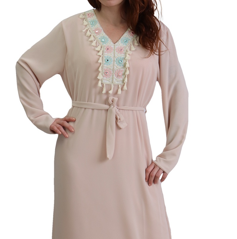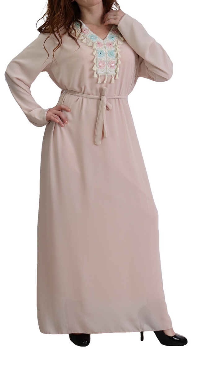 Robe tissu polaire avec ceinture (Vêtement Hijab Saison Automne-Hiver) - Couleur saumon - REF. 35697 (26.90 €)