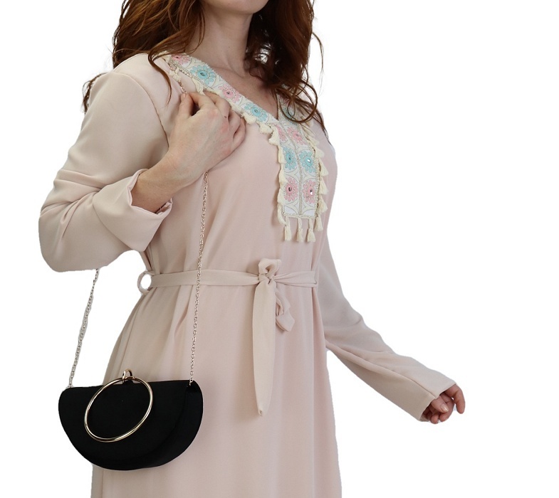 Robe longue noire avec ceinture intégrée et broderies au niveau des manches - REF. 29071 (29.90 €)
