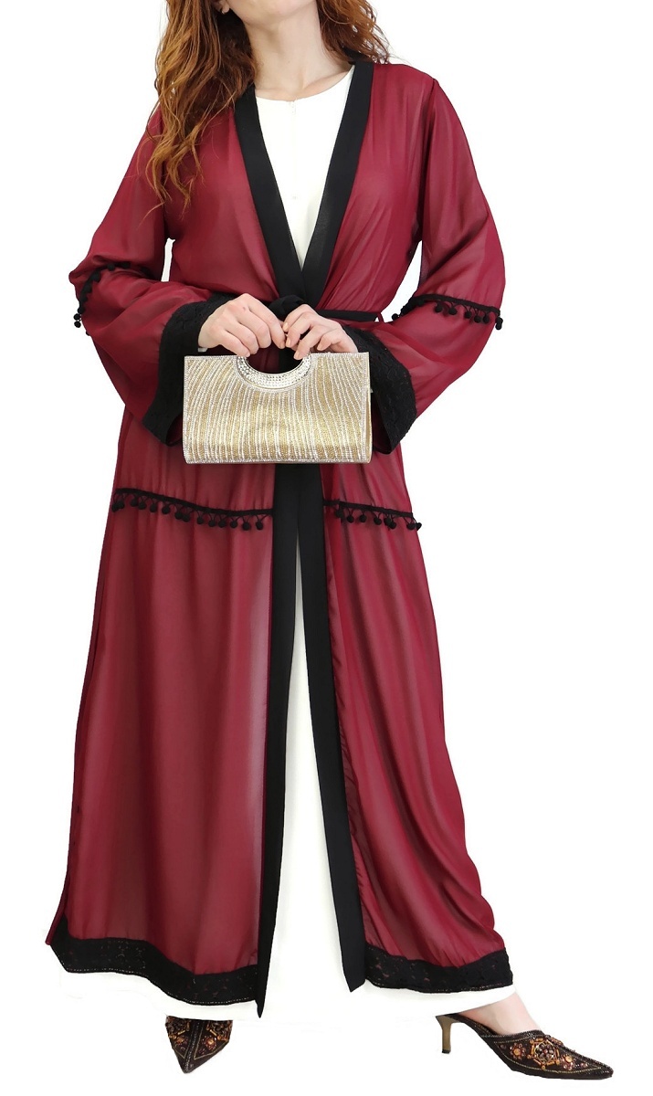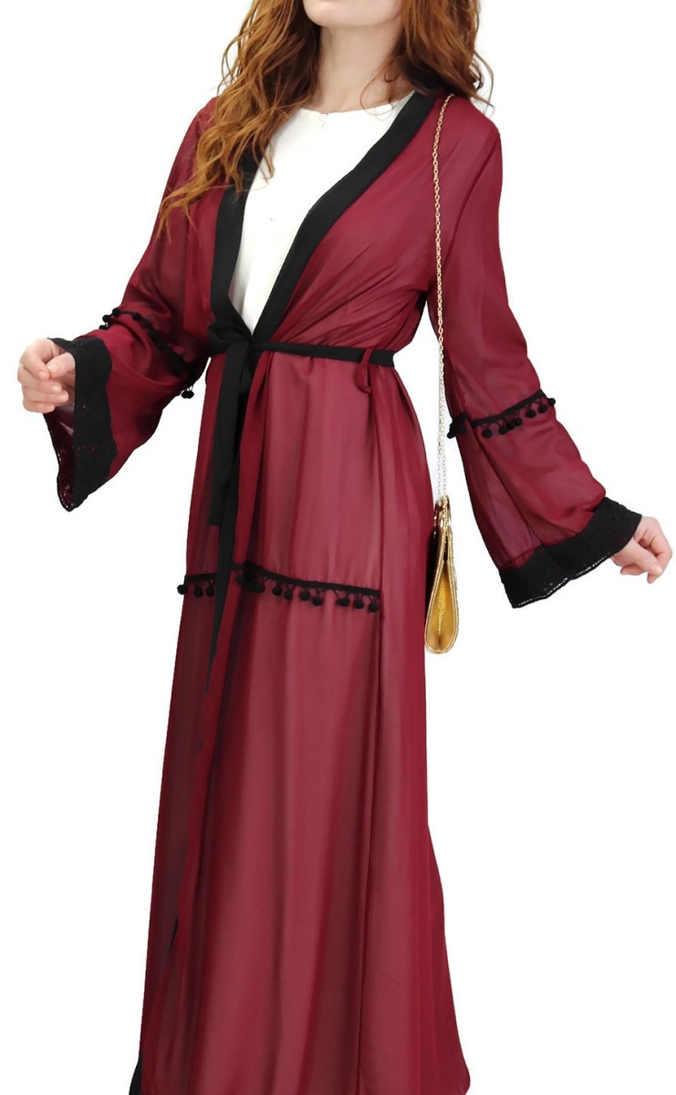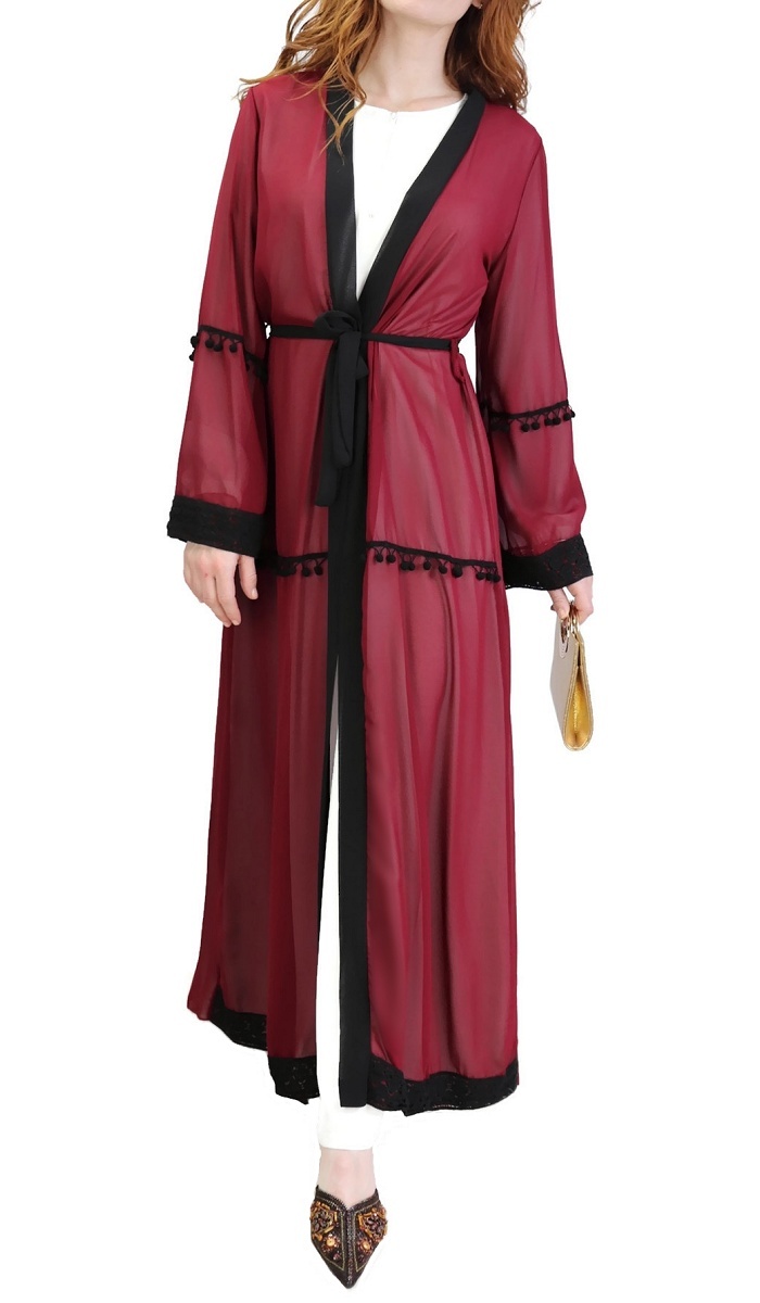 Simple et utile, il se porte ouvert ou fermé et on peut l'ajuster à la taille ou non selon les circonstances. Ses manches sont légèrement évasées, elles sont ornées de pompons qui feront sensation, alors saisissez l'occasion en vous offrant ce beau cardigan.