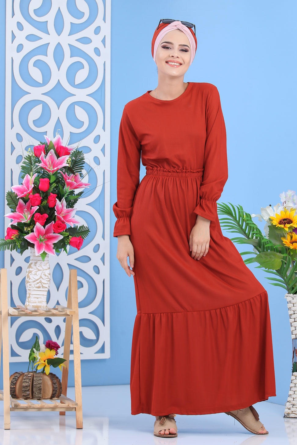 Robe longue décontractée effet strié pour femme - Couleur rouille Vetement & Accessoire