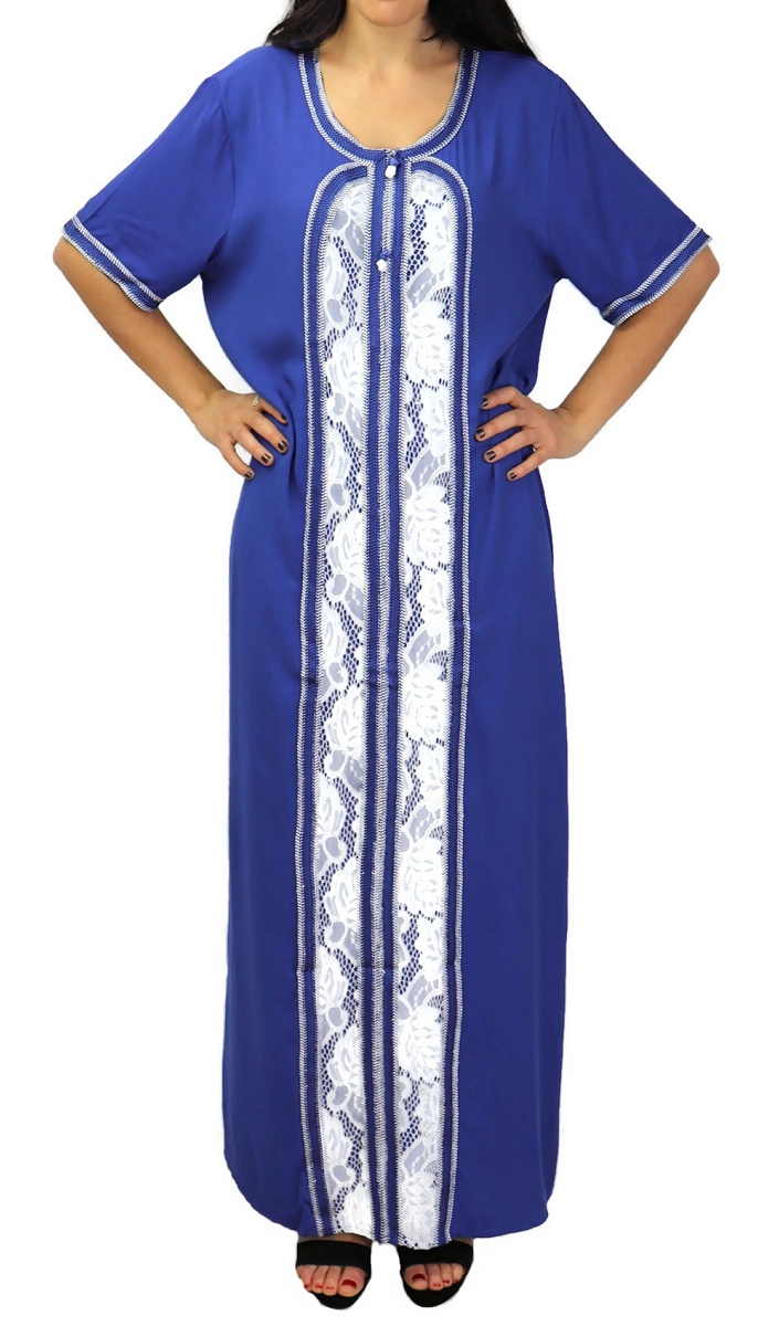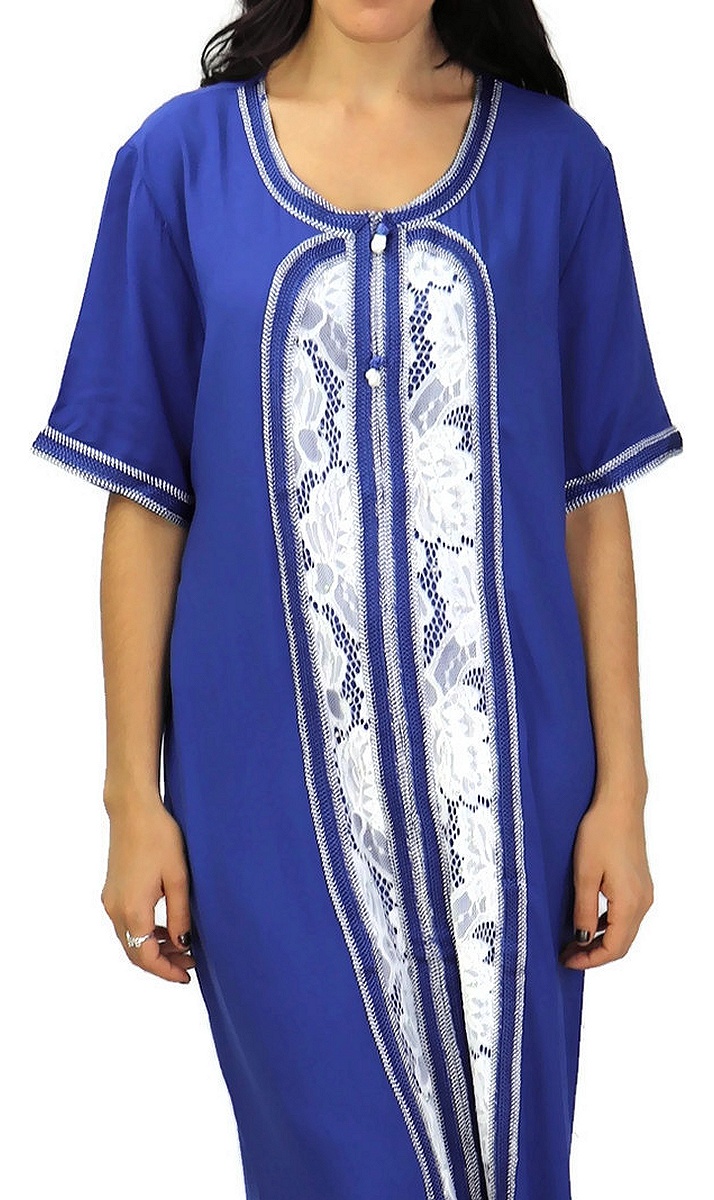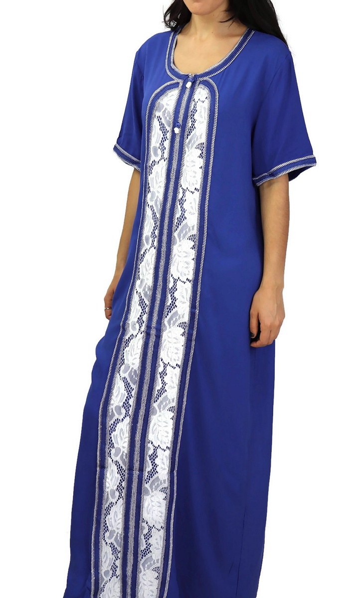 Robe orientale longue brodée manches courtes fluide et décontractée pour femme - Couleur bleu roi - REF. 33407 (29.00 €)