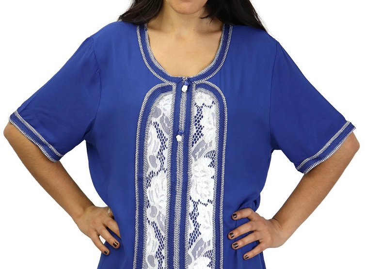 Robe d'intérieur brodée manches courtes avec strass - Couleur bleu Vetement & Accessoire
