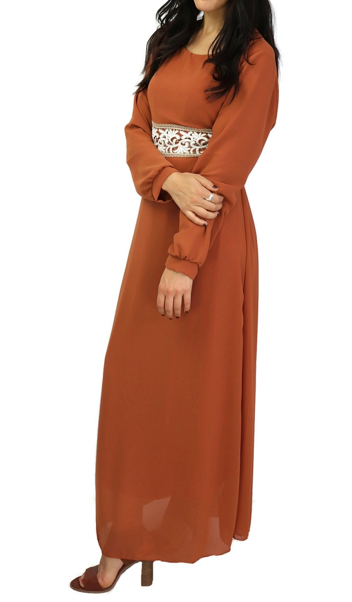 Cette robe en mousseline entièrement doublée fera sensation lors de vos soirées. On aime sa broderie fine au niveau de la taille, sa ceinture intégrée qui s'attache et se détache, sa coupe droite et ses finitions irréprochables.