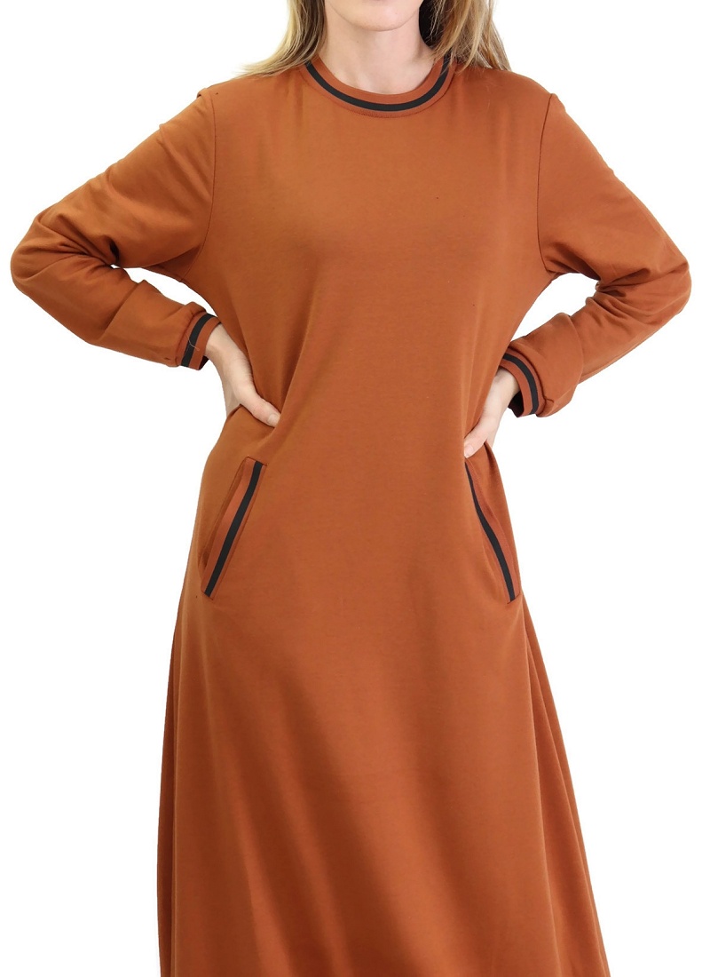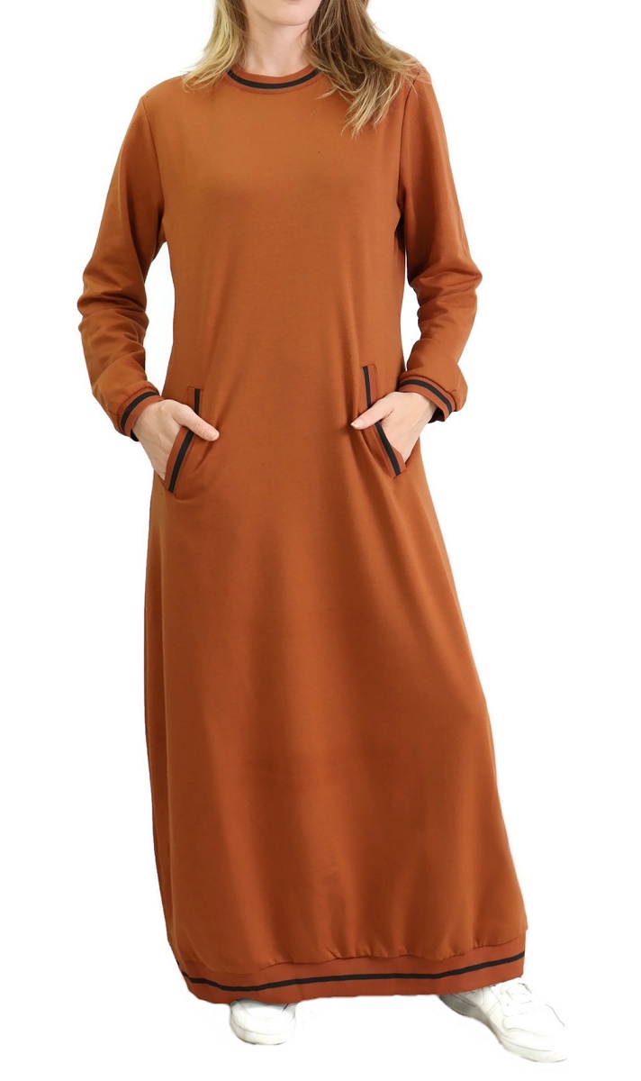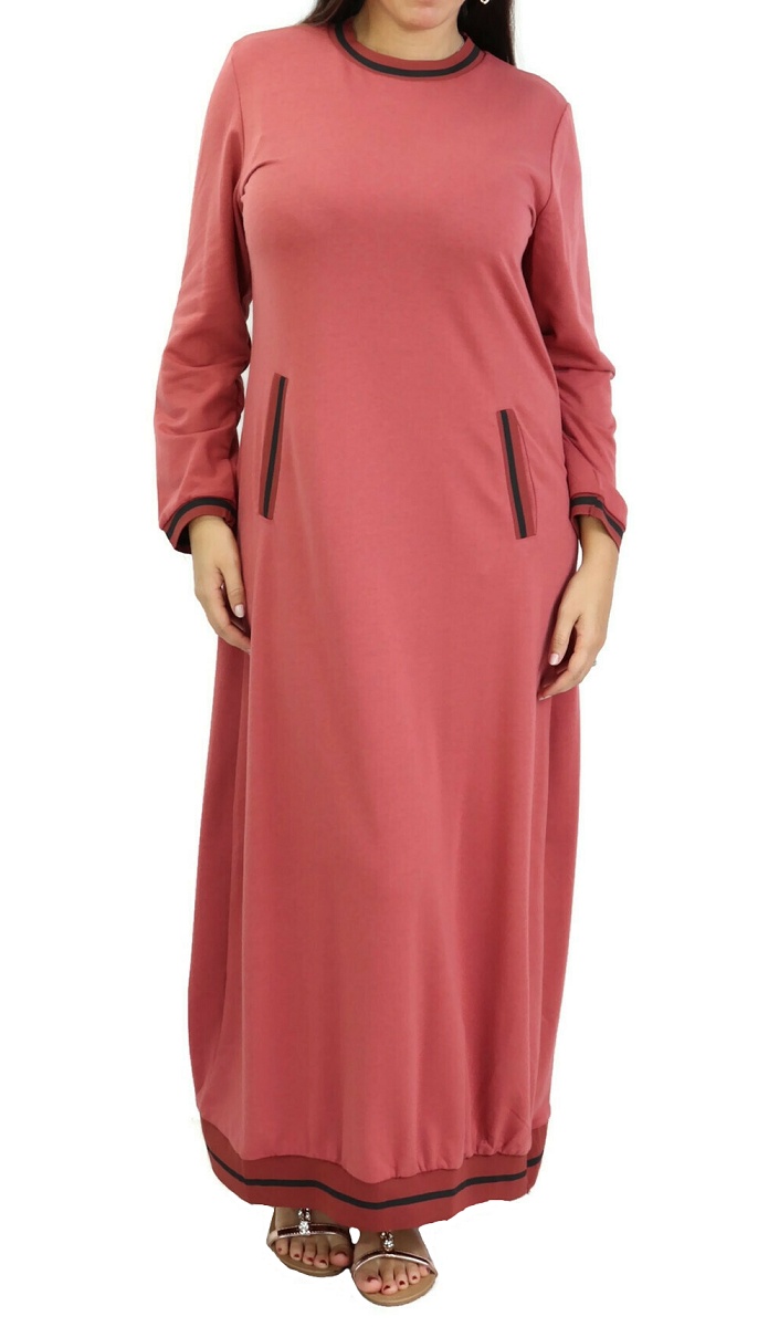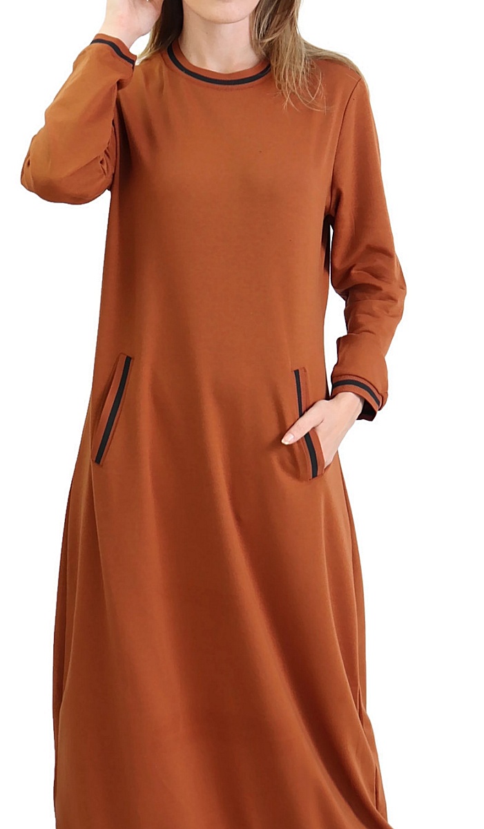 Robe longue, col rond, 2 poches latérales, bordures côtelées. Changez de style avec ce modèle décontracté de matière douce pour un confort ultime.