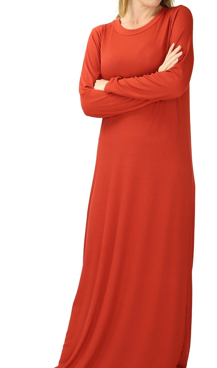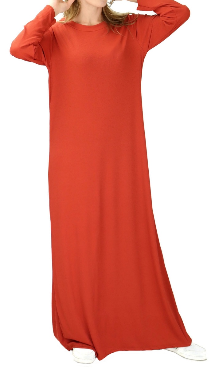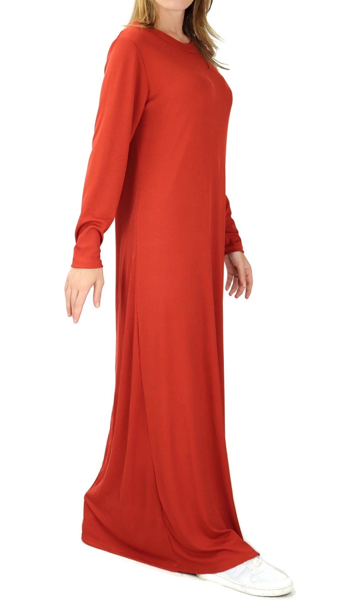 Robe longue en crêpe (Robes pour femmes voilées - Nouveautés) - Couleur brique - REF. 35934 (24.90 €)
